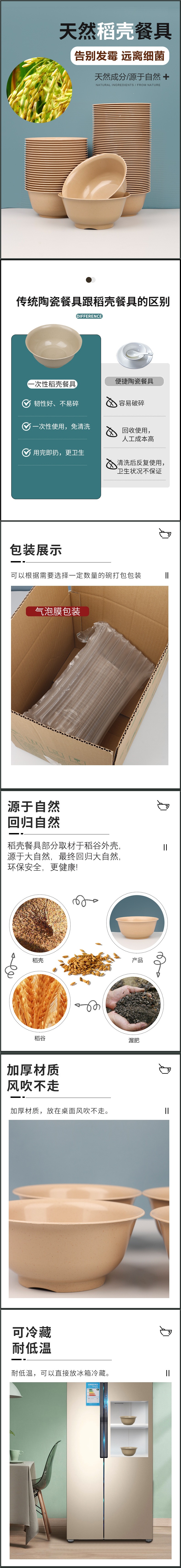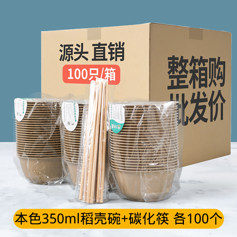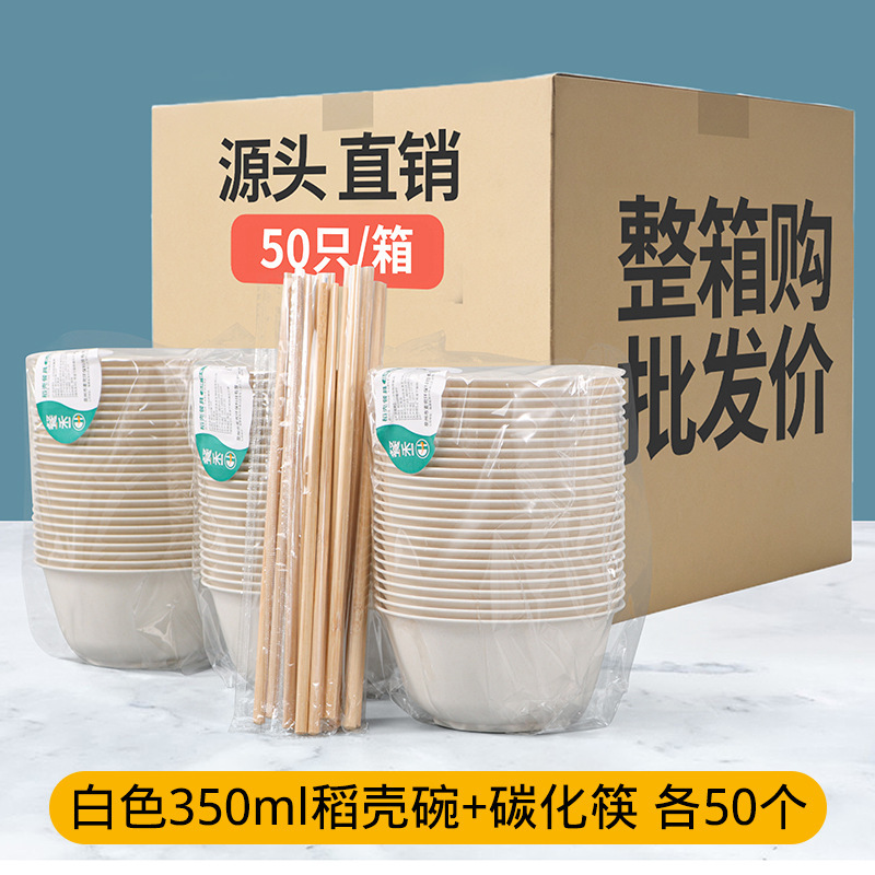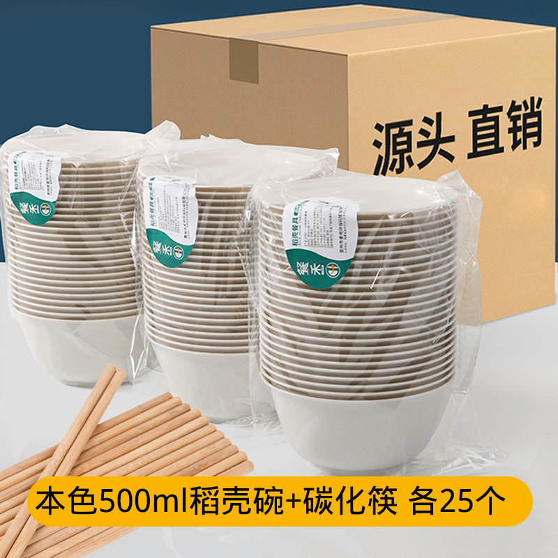 쌀 껍질 일회용 그릇 및 젓가락 세트 식품 등급 가정용 쌀 그릇 중국 설날 결혼식 전체 상자 배치를위한 두꺼운 고온 저항성 국수 그릇