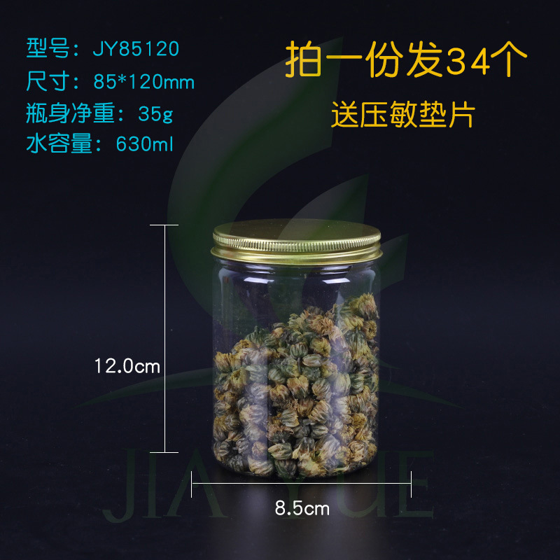 알루미늄 골드 실버 뚜껑 봉인 항아리 라운드 투명 플라스틱 식품 항아리 간식 말린 과일 꽃 차 애완 동물 포장 병 항아리