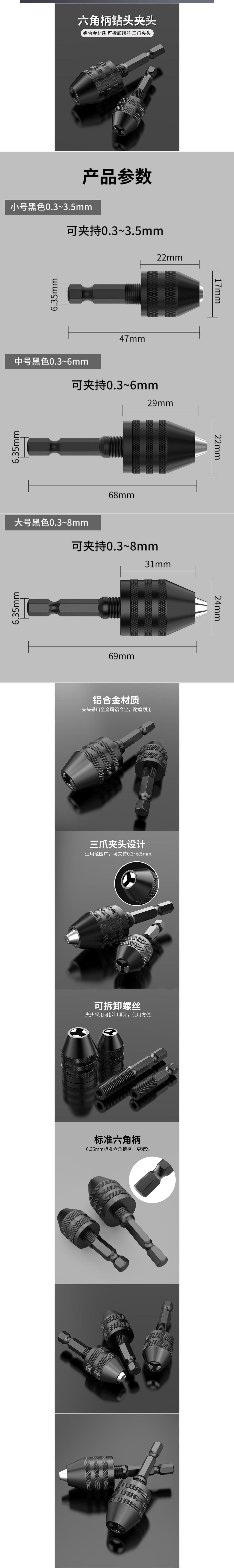 BROPPE Pupe Hexagon 핸들 3 턱 척 퀵 척로드 트위스트 드릴 비트 전환 전기 드릴 척