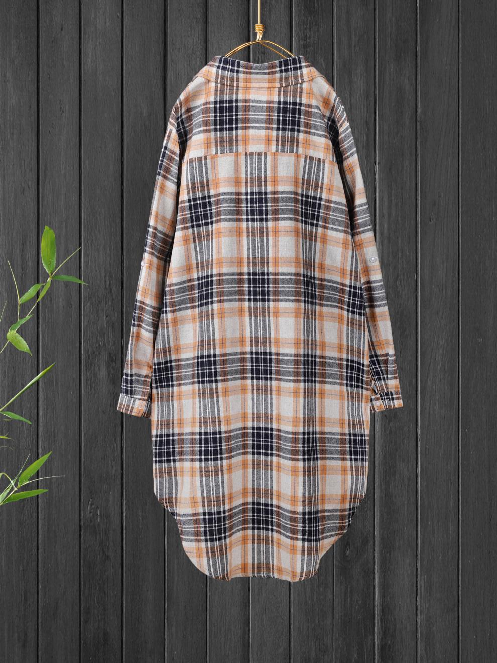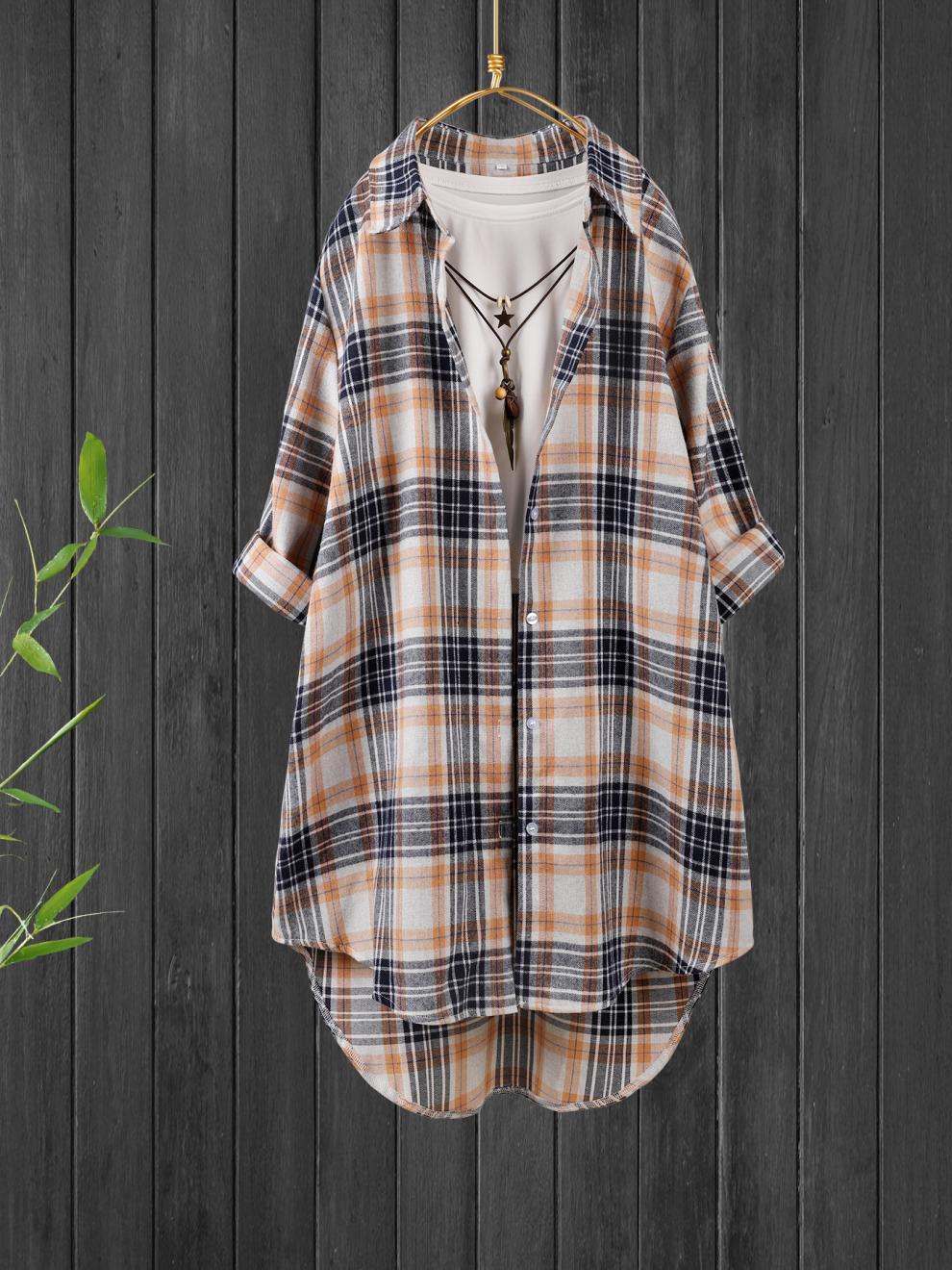 유럽과 미국의 플러스 사이즈 여성 의류 2025 봄 새로운 예술적 복고풍 캐주얼 격자 무늬 셔츠 긴 소매 여성 셔츠스토어 가기
