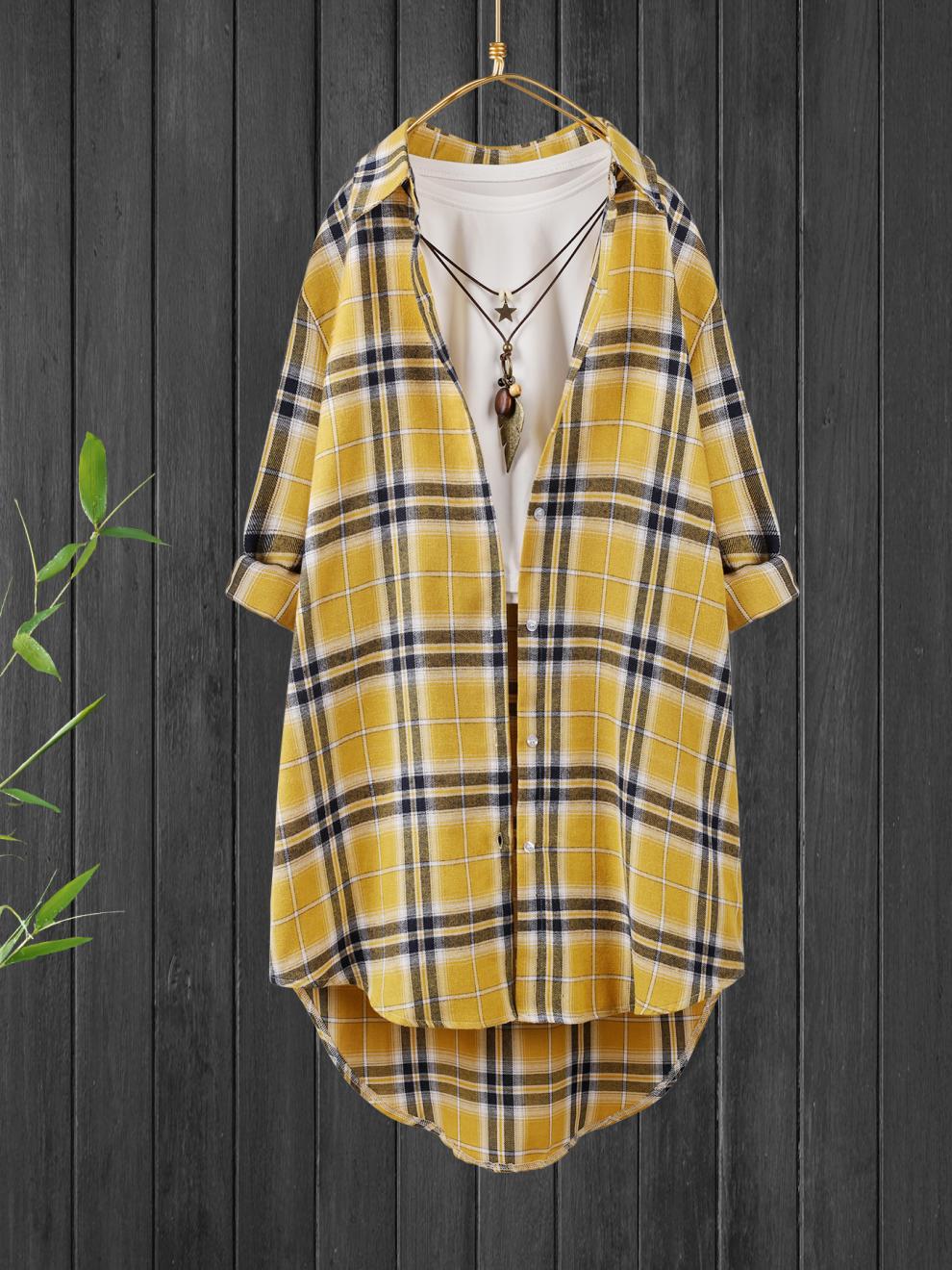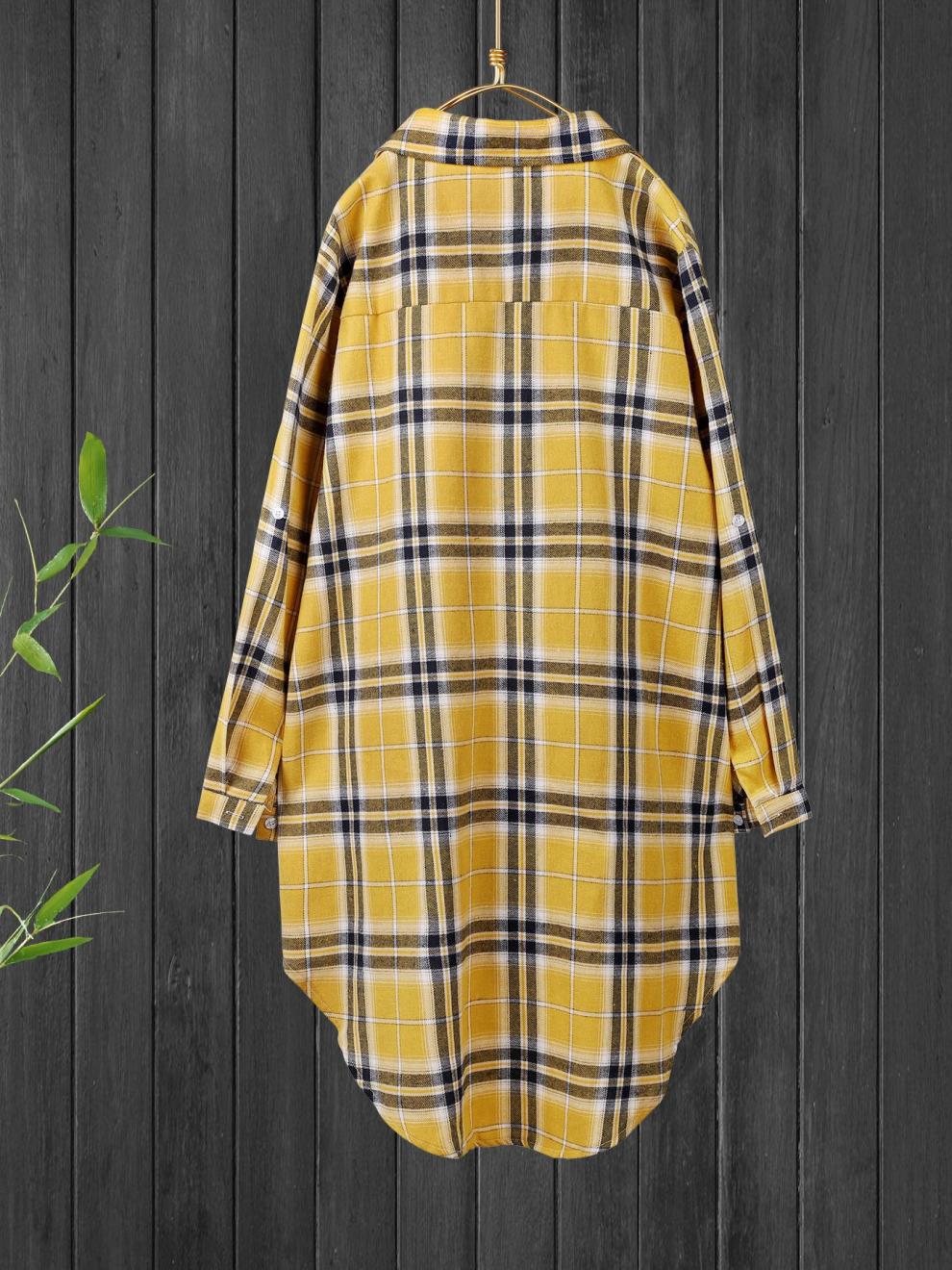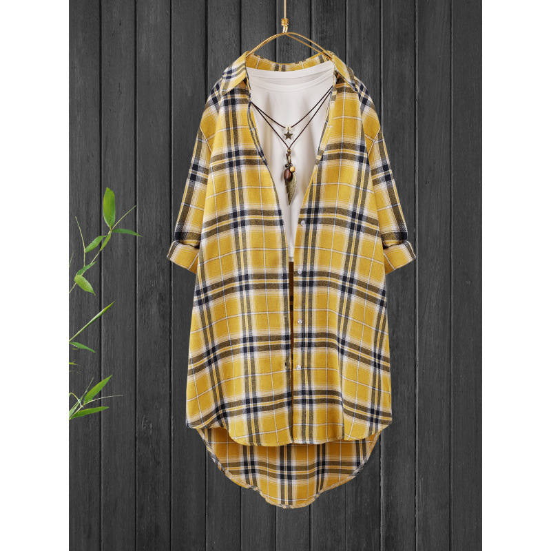 유럽과 미국의 플러스 사이즈 여성 의류 2025 봄 새로운 문학 복고풍 패션 긴 소매 긴 격자 무늬 셔츠스토어 가기