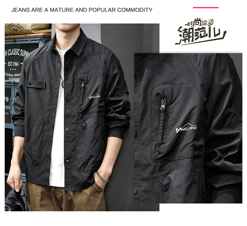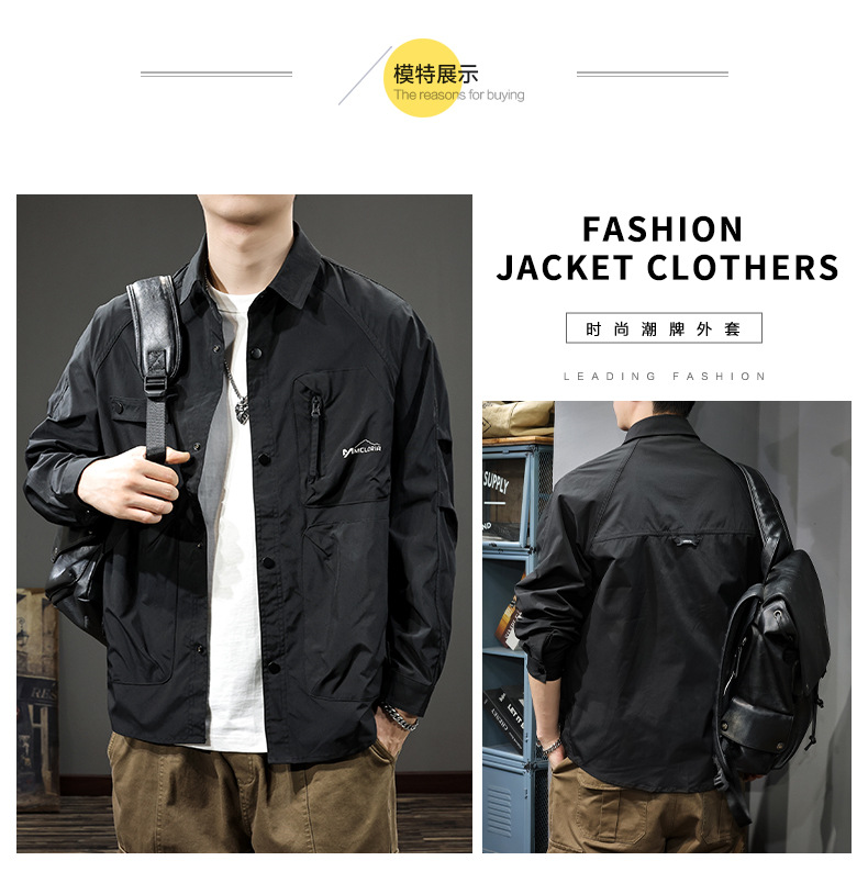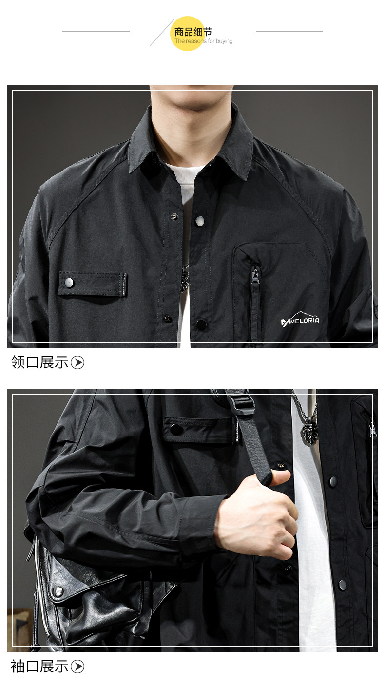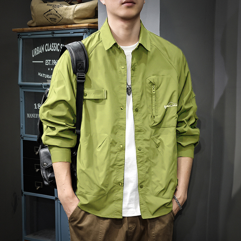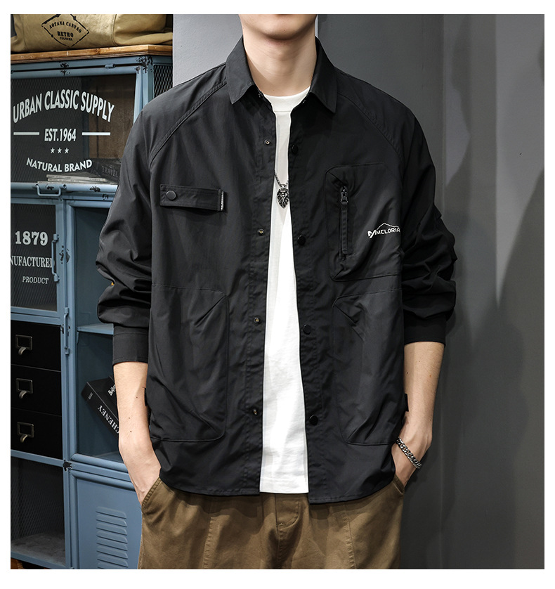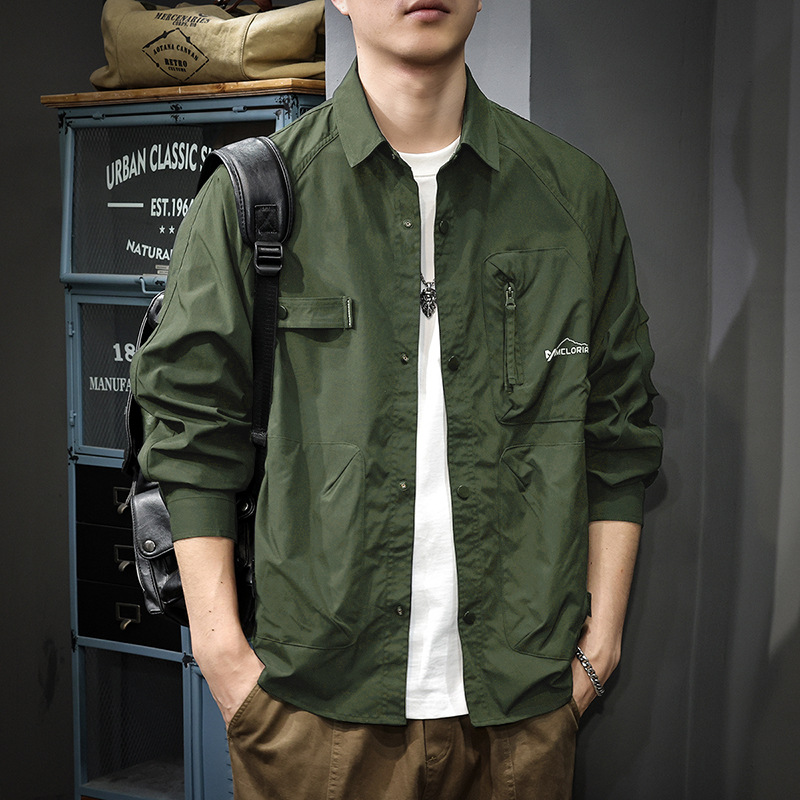 미국 스타일의 트렌디 한 브랜드 디자인 센스 지퍼 멀티 포켓 작업복 남성용 셔츠 가을과 겨울 더피 수제 캐주얼 옷깃 셔츠 재킷스토어 가기