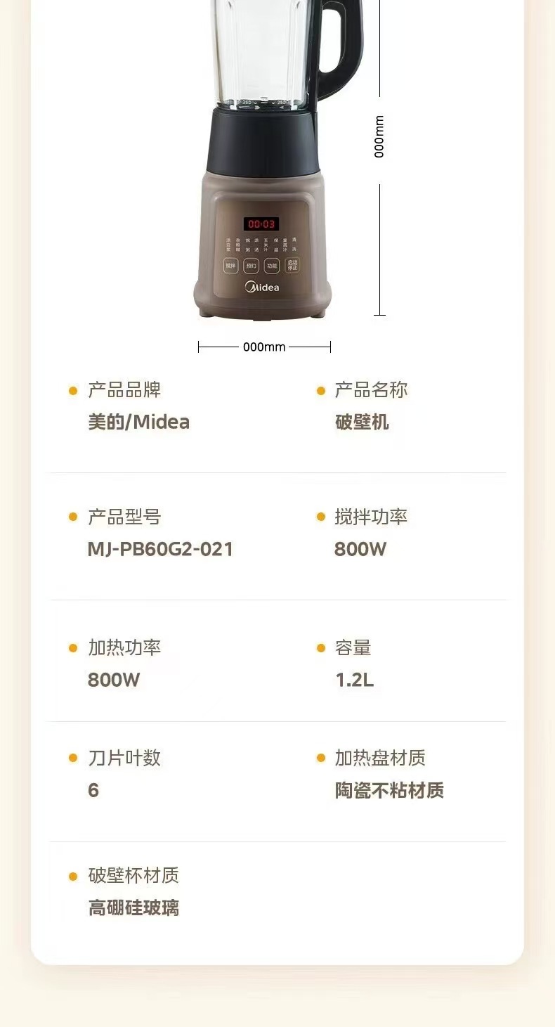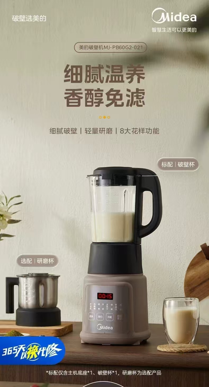 Midea MJ-PB60G2-021 벽 속보 기계 가구 1.2 리터 자동 다기능 두유 기계 요리 믹서스토어 가기