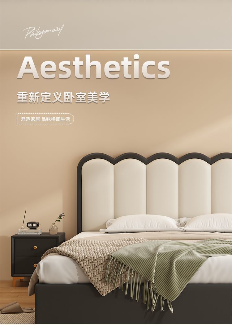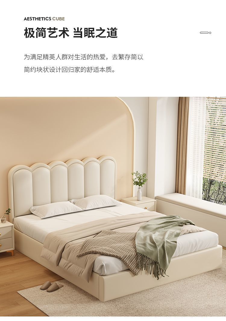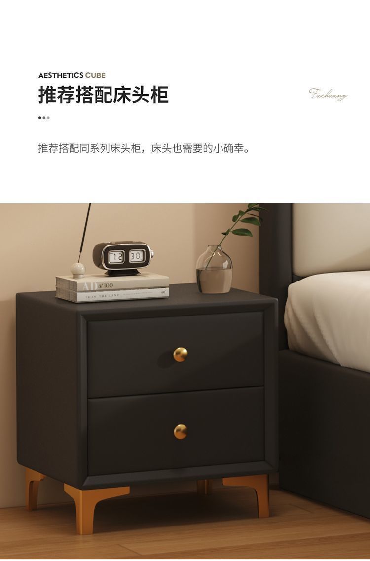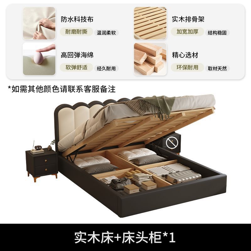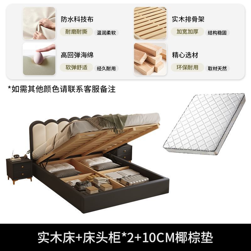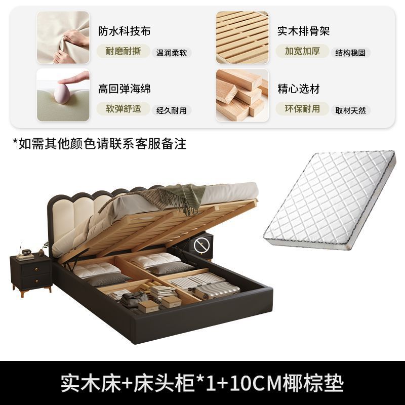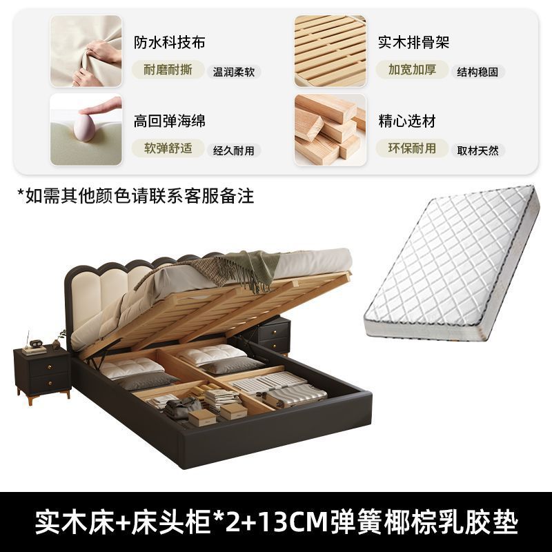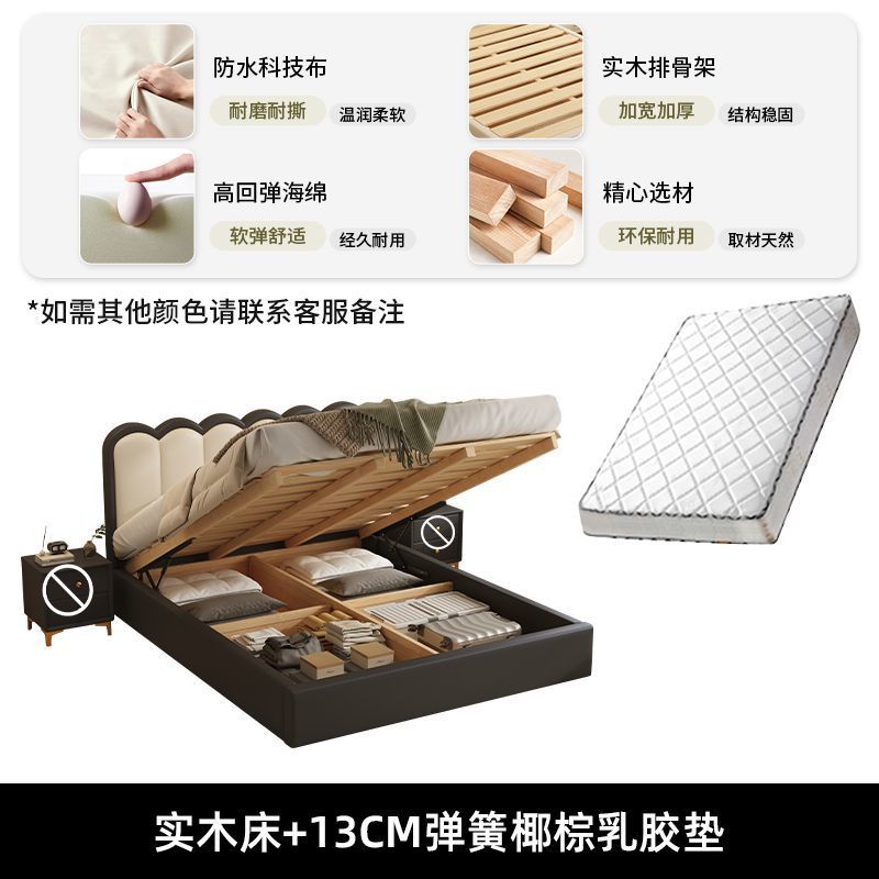 • 파이프 설치 + S 스타일 테크니컬 천 소프트 커버 원목 공기압 침대 + 캐비닛 2개