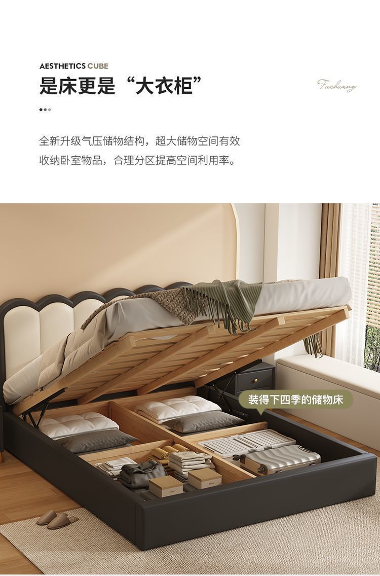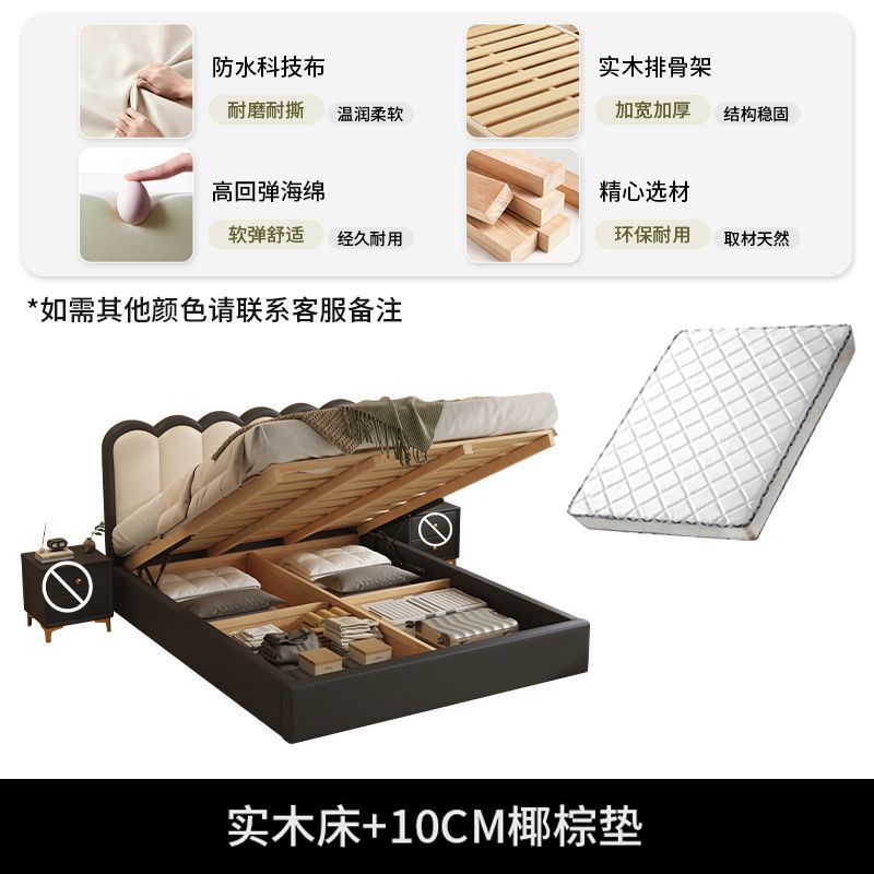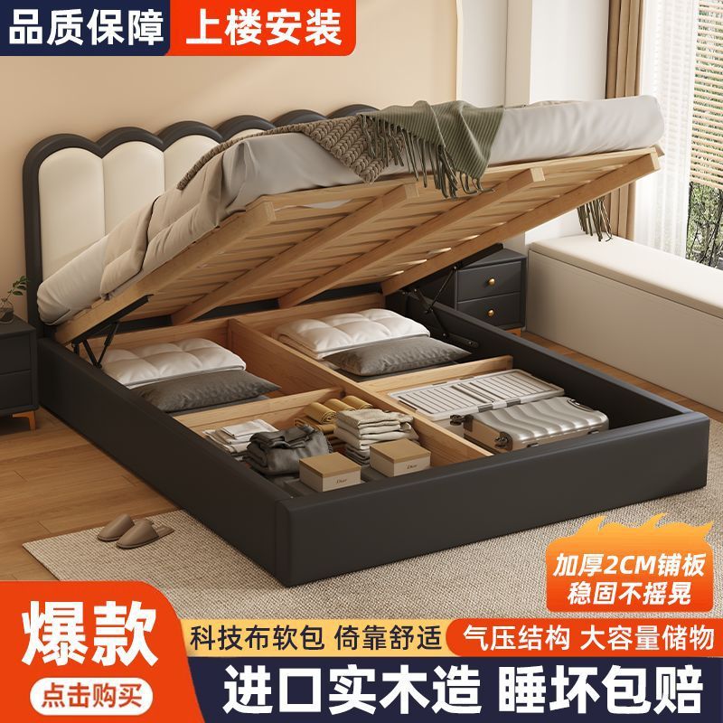 [607 개 판매 30 일] 공기 압력 단단한 나무 높은 상자 저장 침대 간단한 2x2.2 m 마스터 침실 더블 퀸 침대 1.스토어 가기
