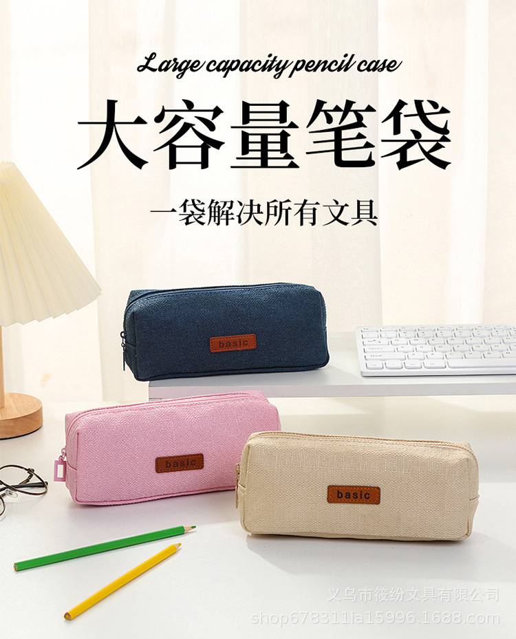 재고 단일 레이어 대용량 연필 가방 도매 간단한 Ins 스타일 연필 가방 솔리드 컬러 스퀘어 학생면 및 리넨 문구 가방스토어 가기
