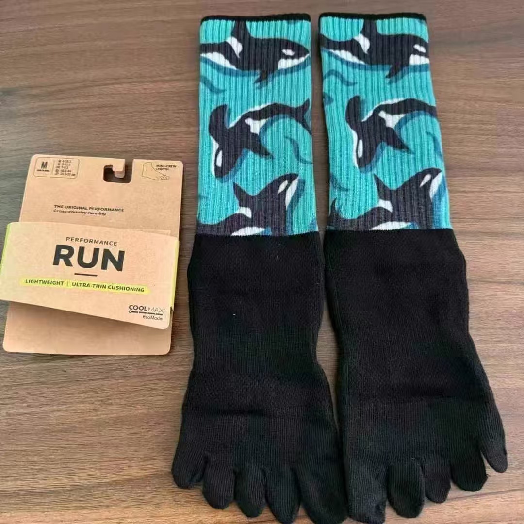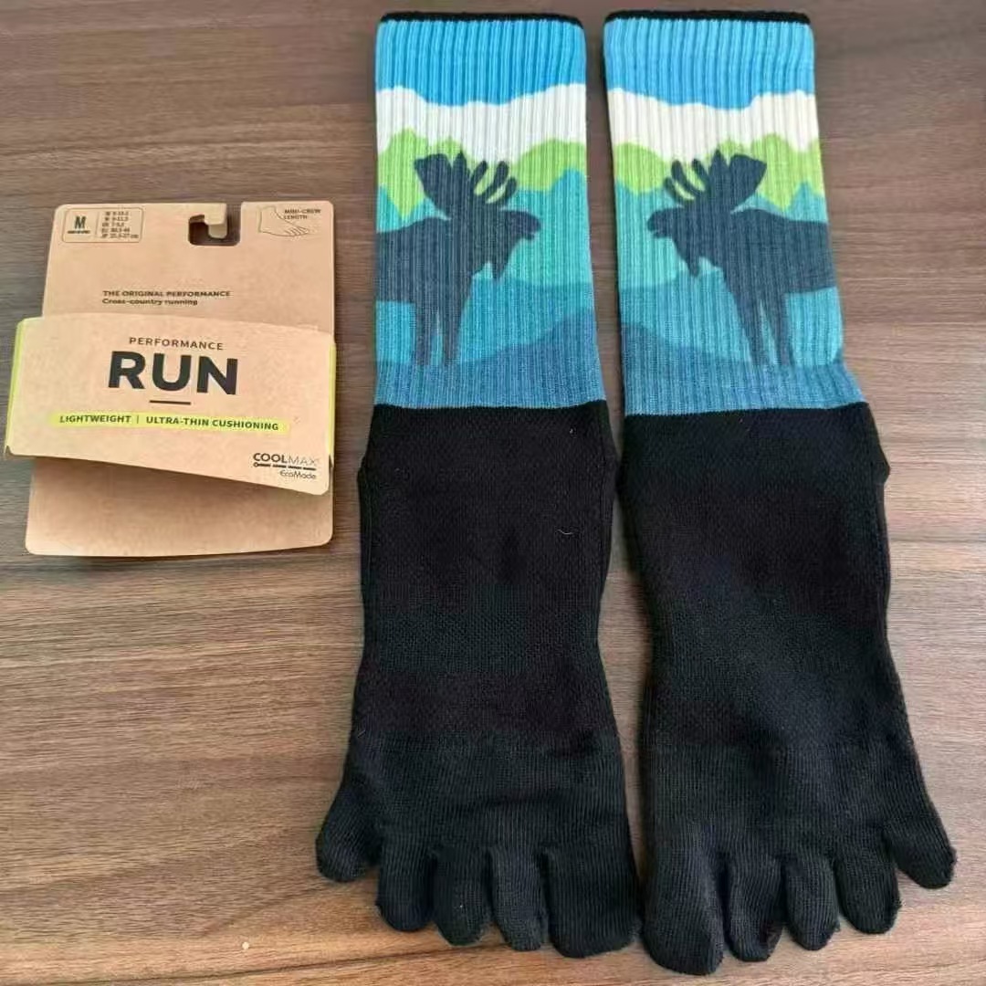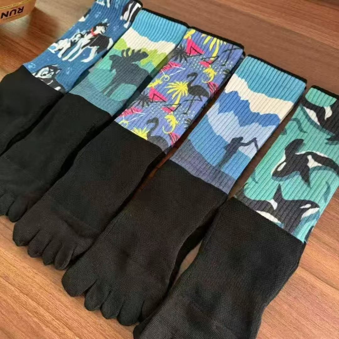 꼬리 싱글 유럽과 미국의 다섯 손가락 양말 긴 튜브 두꺼운 색상 일치 면 양말 야외 하이킹 양말 마라톤 크로스 컨트리 양말