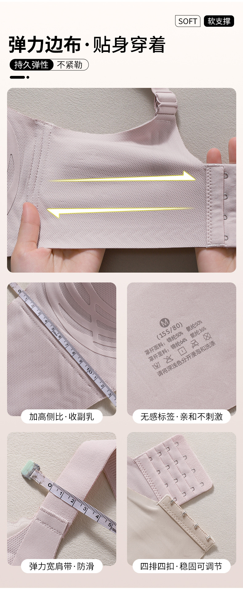 편안한 추적없는 속옷 여성용 젤리 스트립 소프트 지원 고정 컵 조정 가능한 푸시 업 풀업 안티 처짐 스포츠 브라스토어 가기