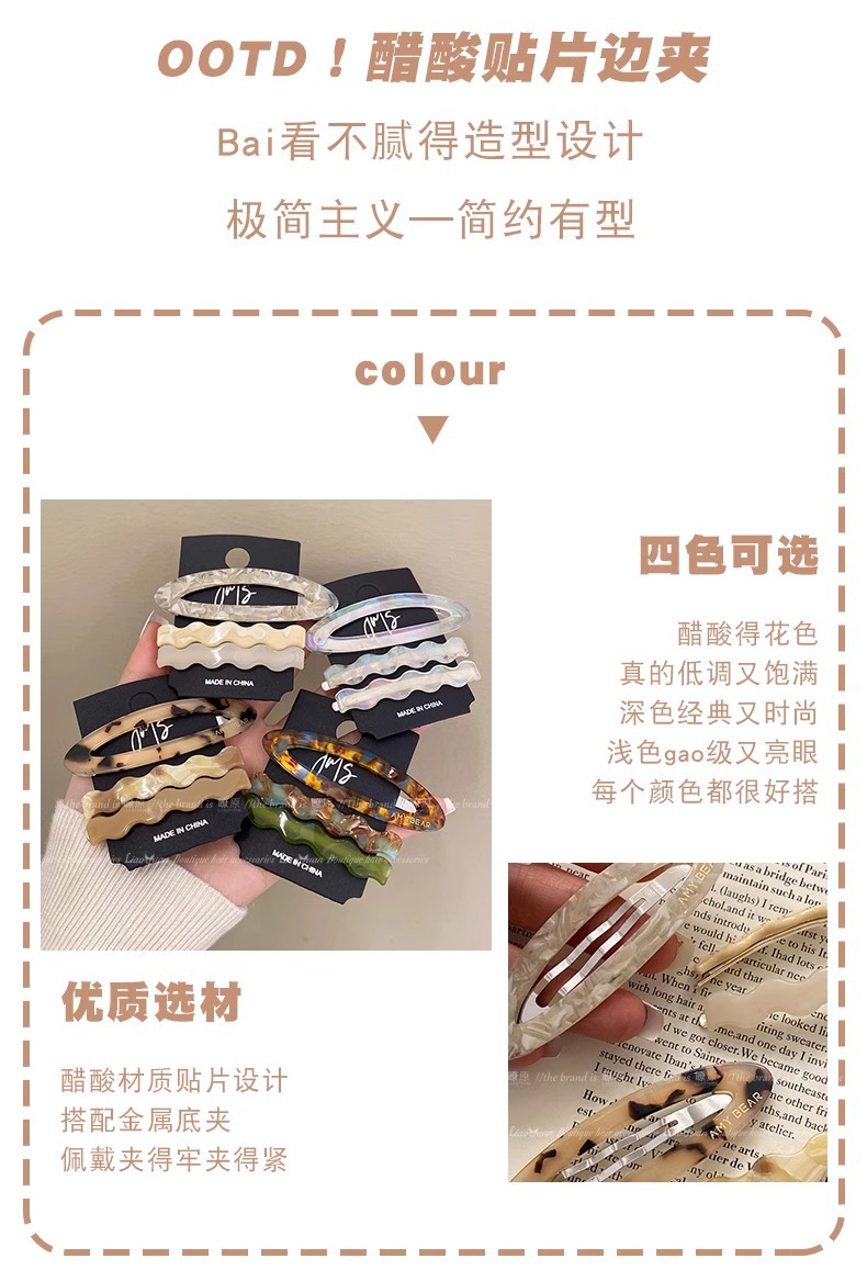 봄 3 Acetic Acid Hairpin 사이드 클립 간단한 사이드 뱅 클립 2025 새로운 하이 엔드 인 깨진 헤어핀 헤드웨어스토어 가기