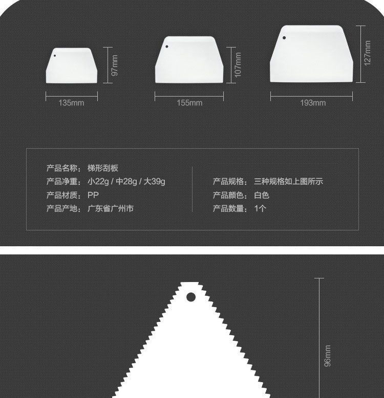 식품 등급 PP 플라스틱 대형 소형 사다리꼴 세미 커터 스크레이퍼 블레이드 베이킹 케이크 크림 삼각형 스크레이퍼