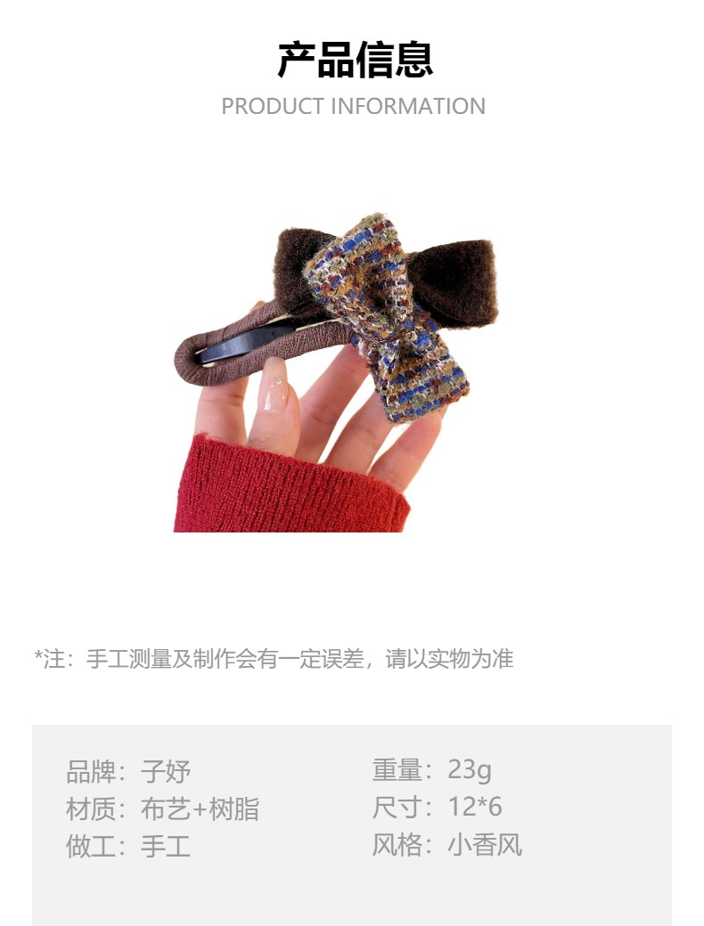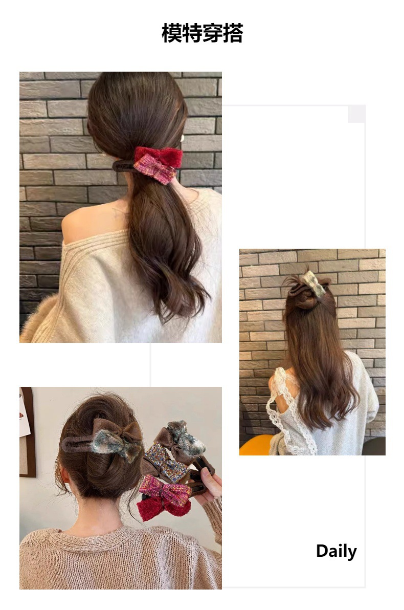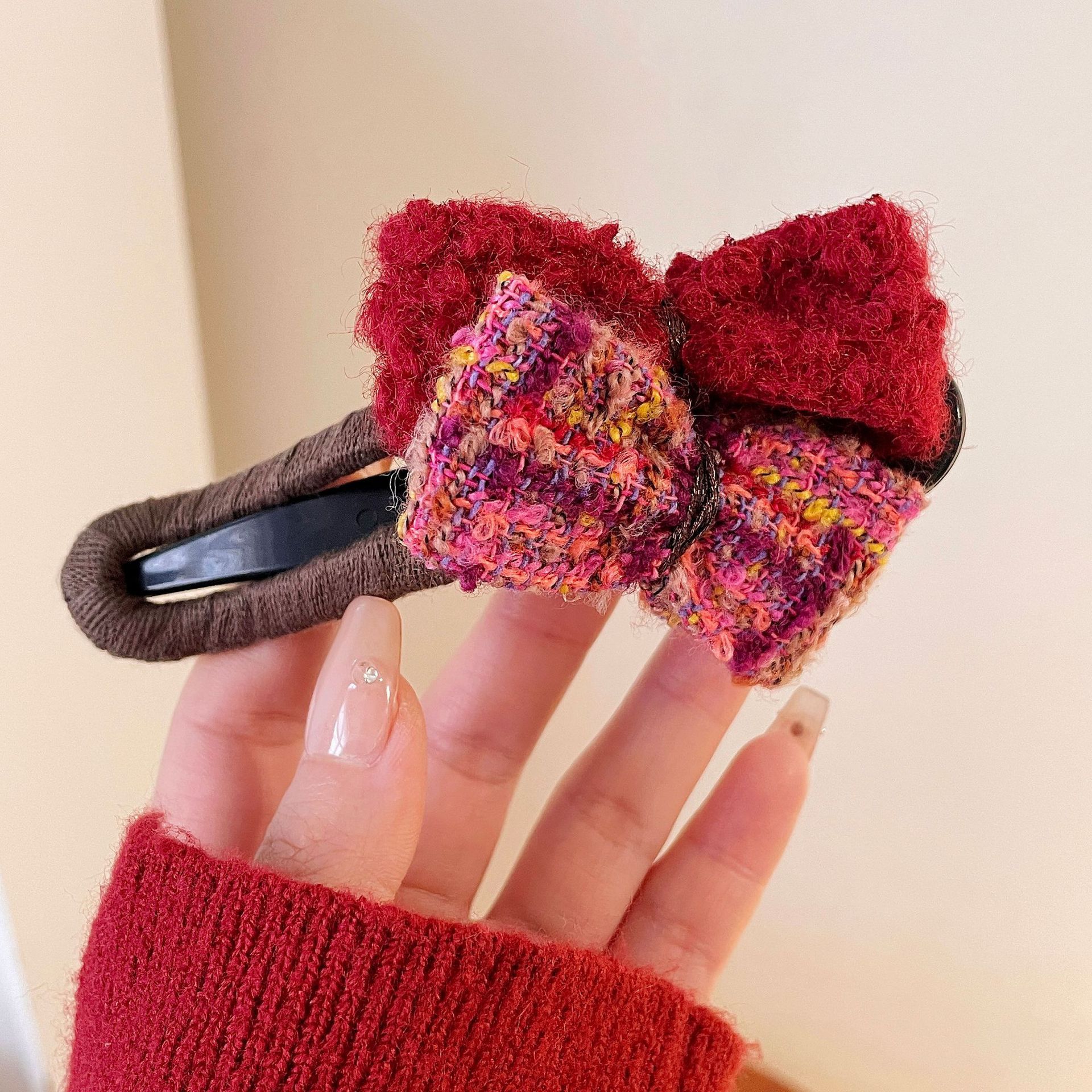샤넬 스타일 활 봉제 그릴 클립 여성용 등 머리 머리핀 우아한 덕빌 클립 가을과 겨울 새로운 헤드웨어 헤어 액세서리