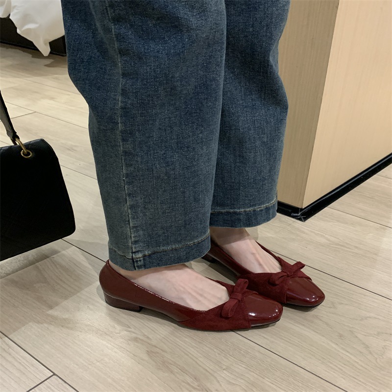 얕은 광장 발가락 통근 스티칭 저발 부드러운 붉은 누드 프랑스 볼더 요정 특허 가죽 활 펌프