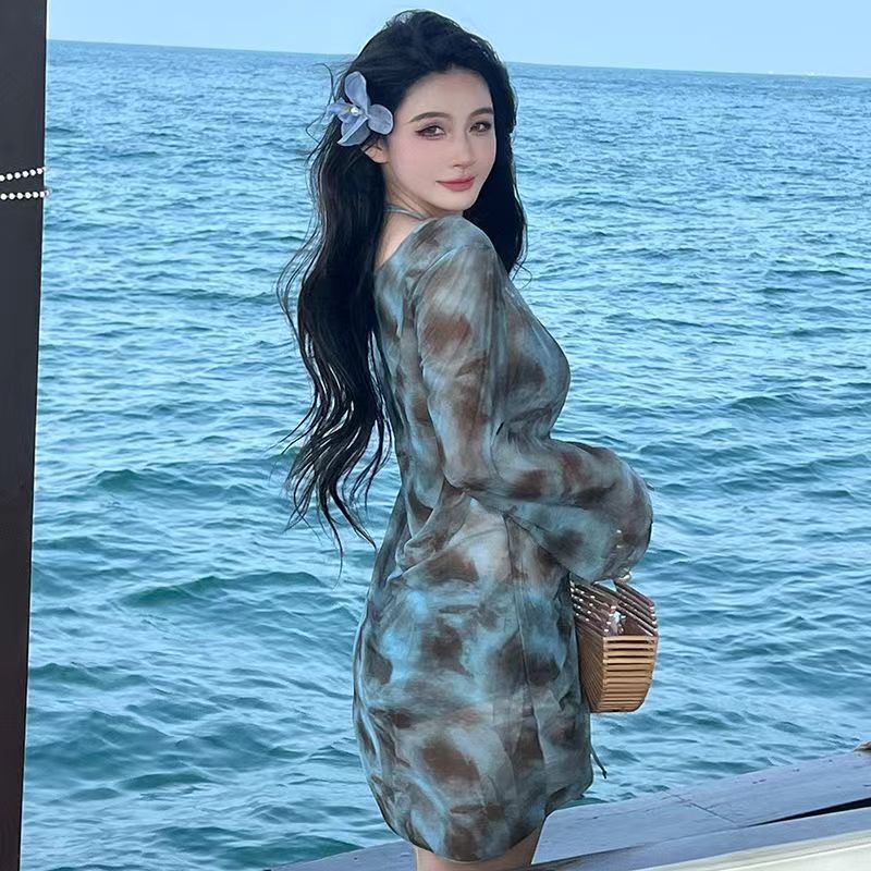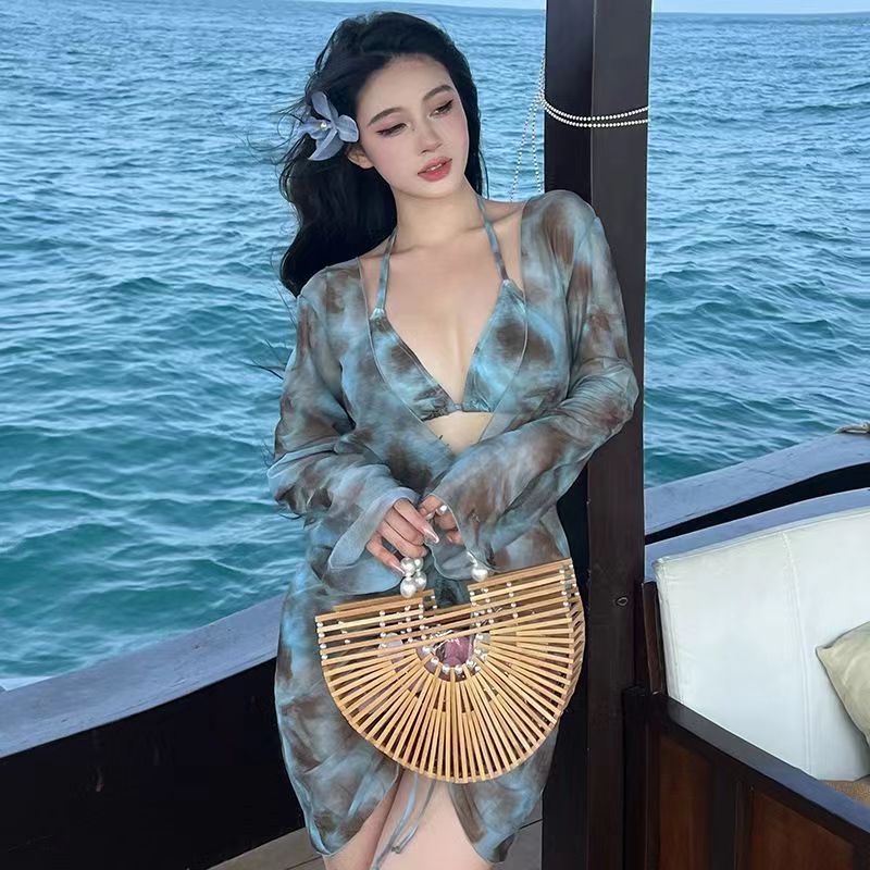 플러스 사이즈 통통녀 홀리데이 비키니 섹시 3 피스 분할 긴 소매 블라우스 순수 욕망 스타일 여성용 벨리 커버 슬리밍 수영복스토어 가기