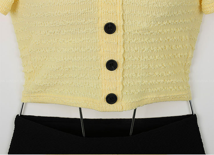 하이 엔드 달콤한 귀여운 소녀 순수한 욕망 샤넬 스타일 버튼 짧은 소매 보수적 인 분할 높은 허리 배꼽 여성용 수영복