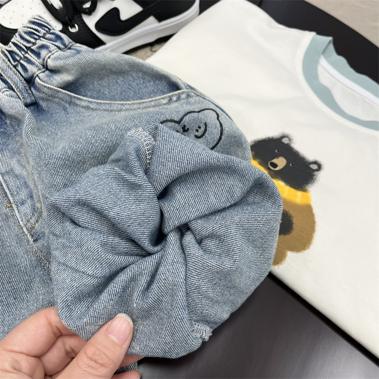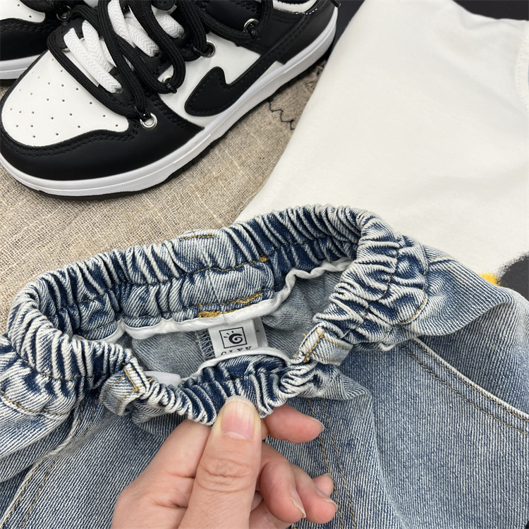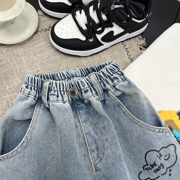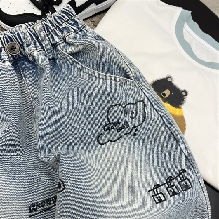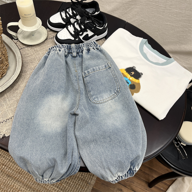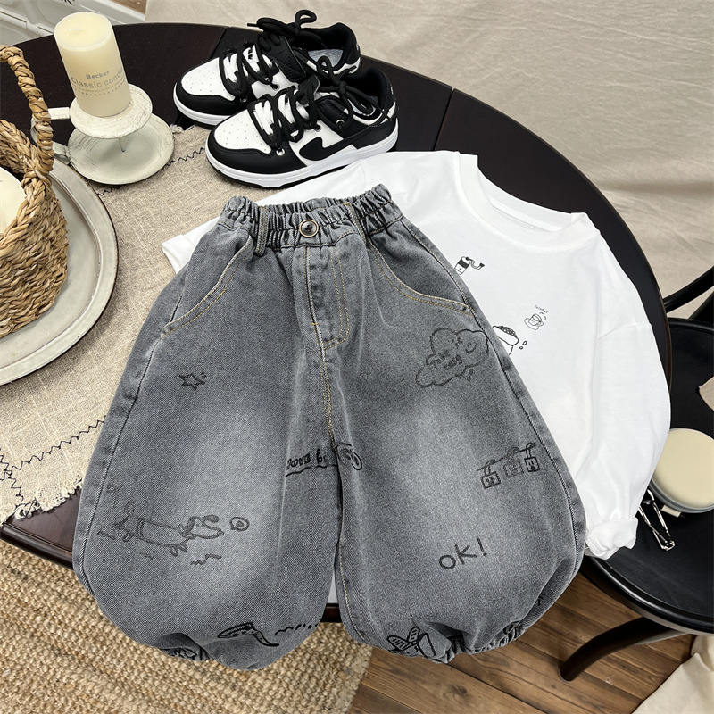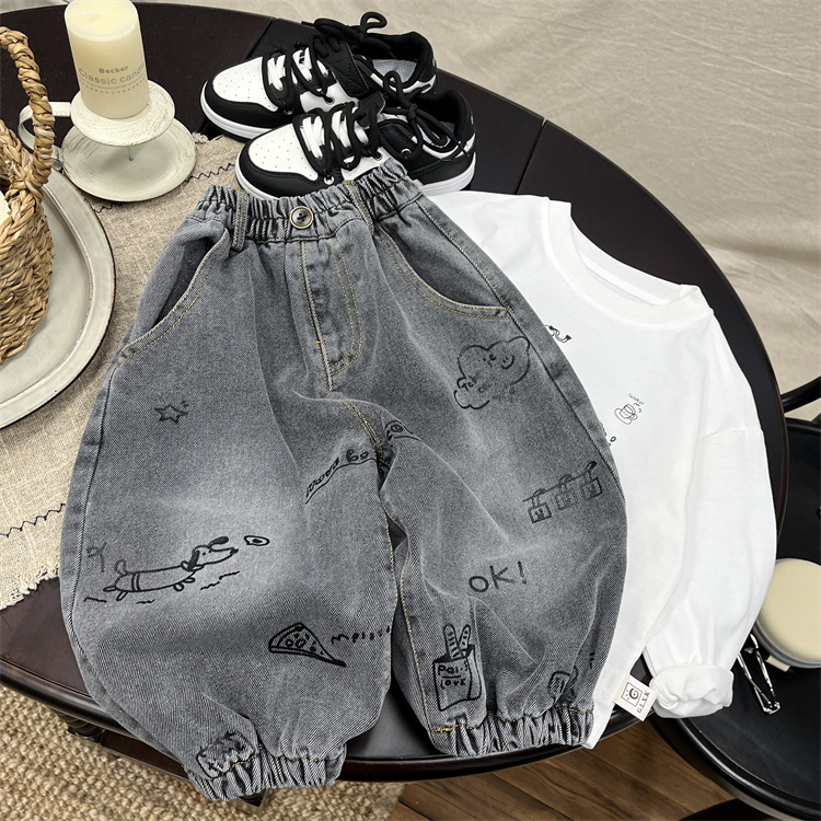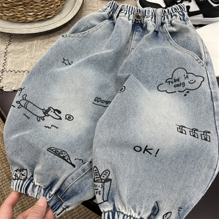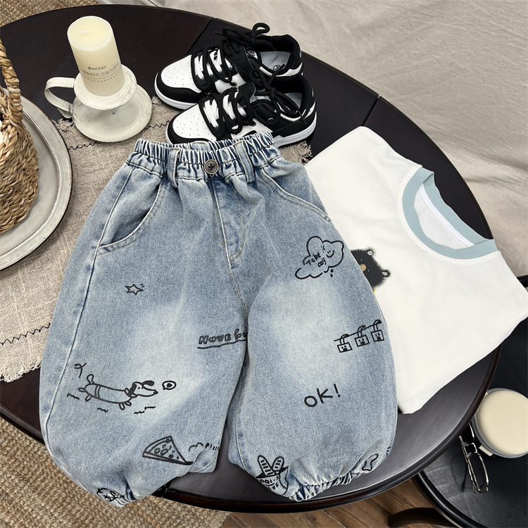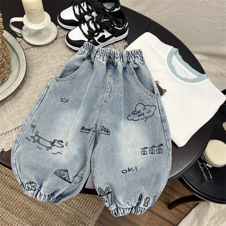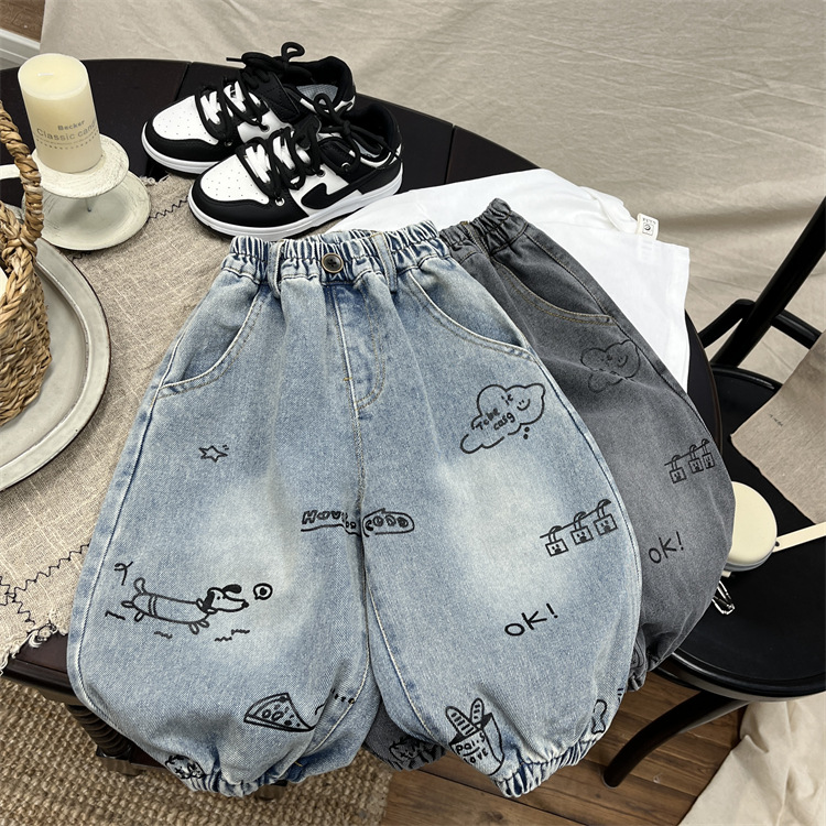 아동 청바지 2025 새로운 가을 스타일 남아 및 여아용 세련된 그래피티 랜턴 팬츠, 아동 및 중년 아동을 위한 캐주얼 와이드 레그 팬츠
