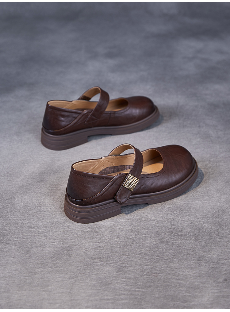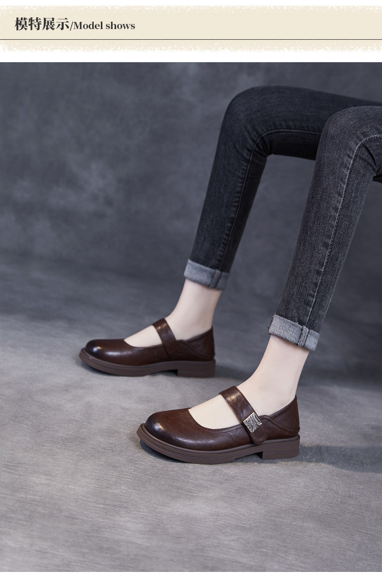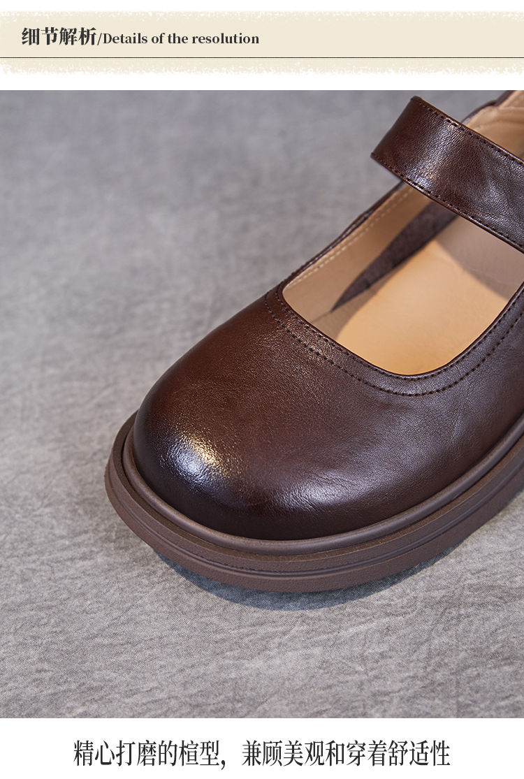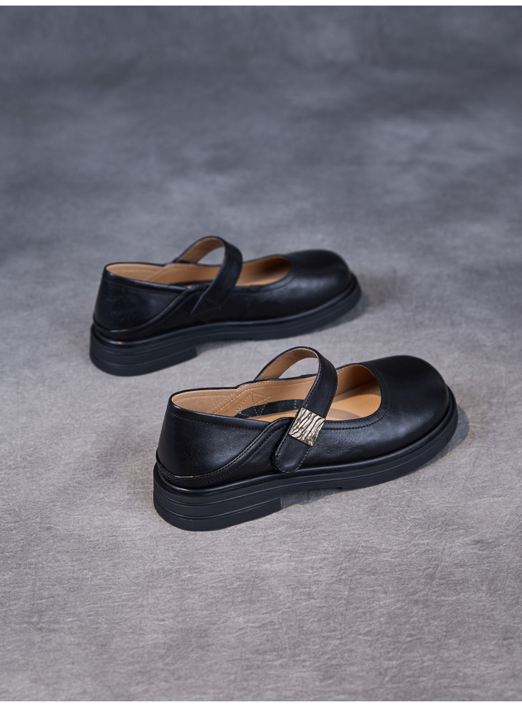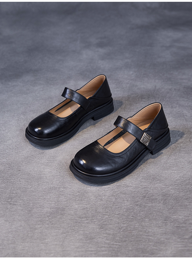 미국 천연 색상 Mary Jane 신발 2025 봄 새로운 올 매치 로우 입 플랫 가죽 여성 신발 두꺼운 힐 스트랩 신발스토어 가기