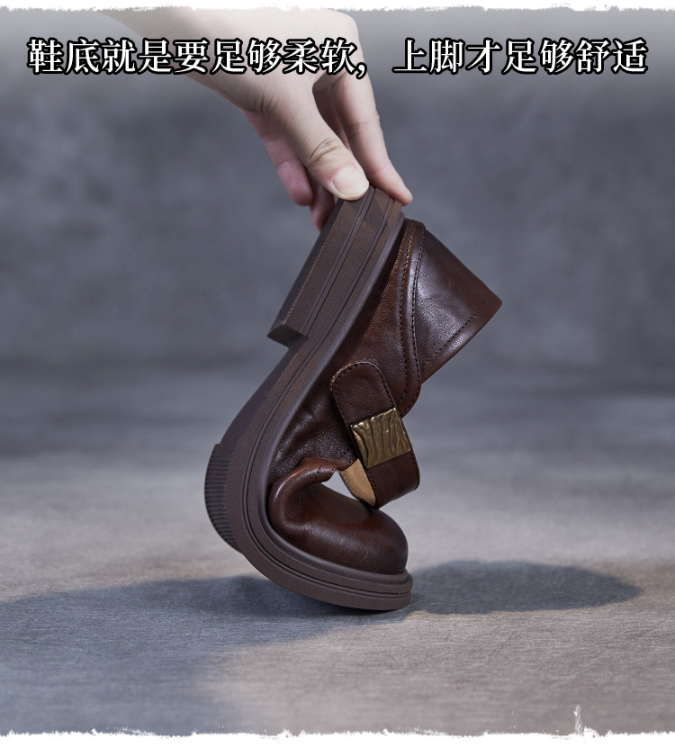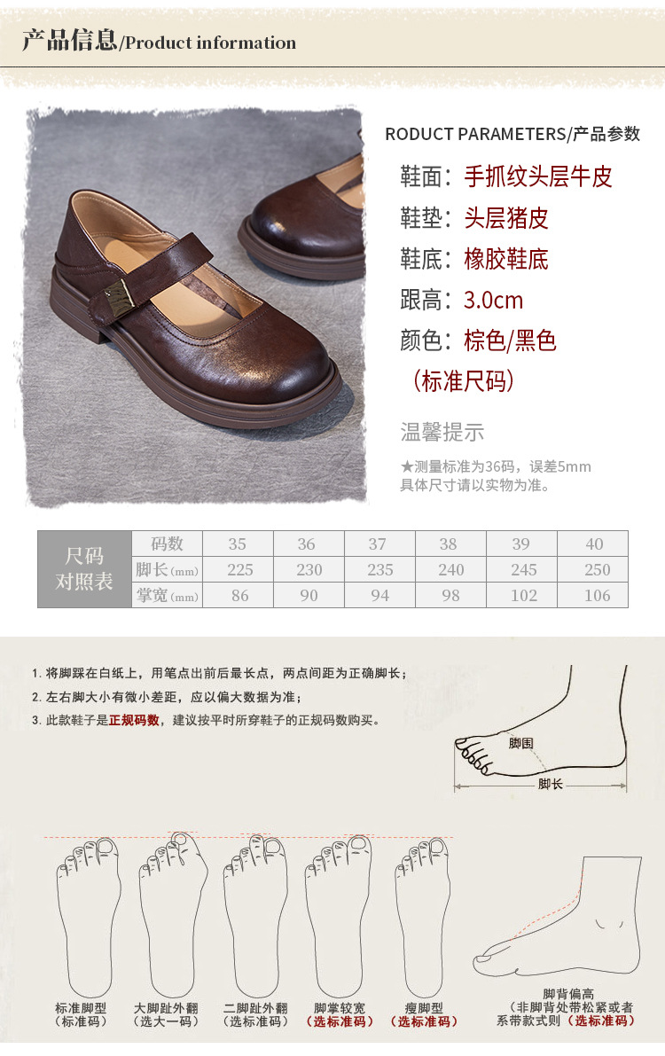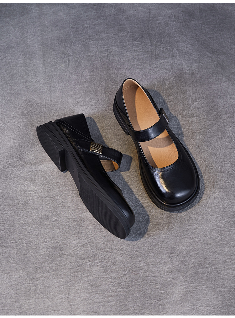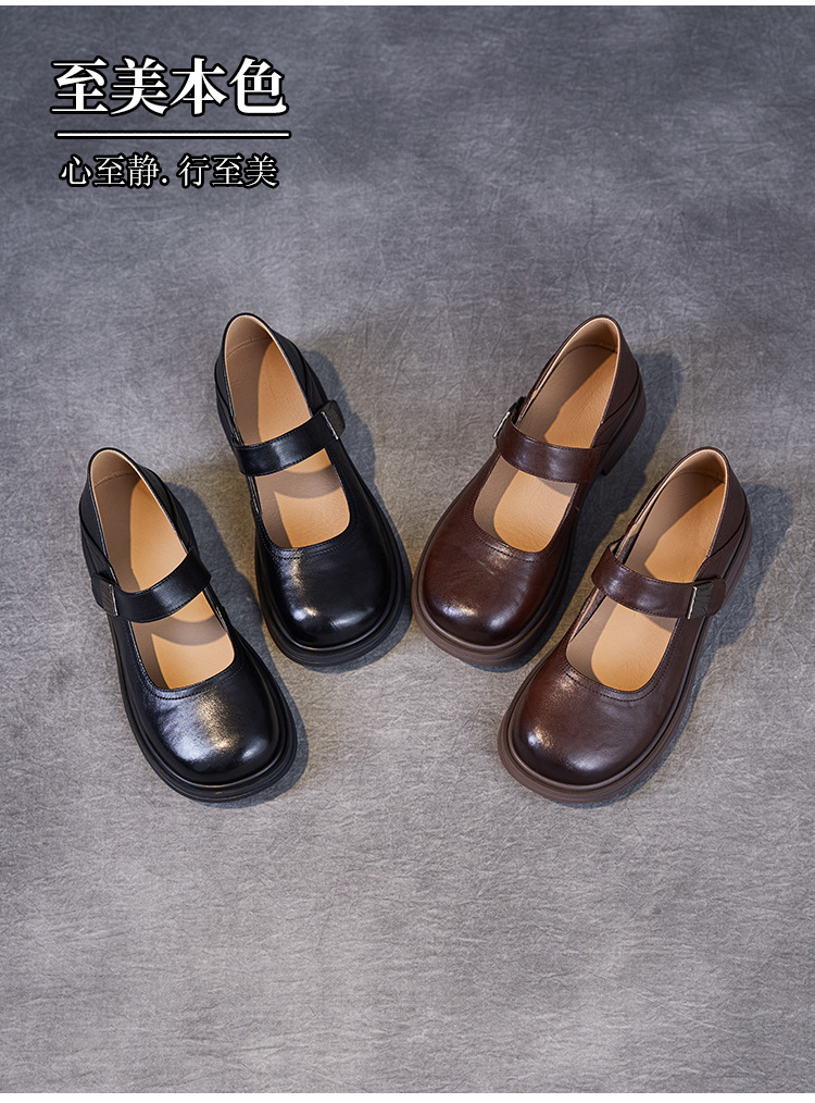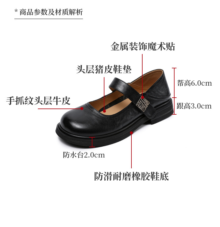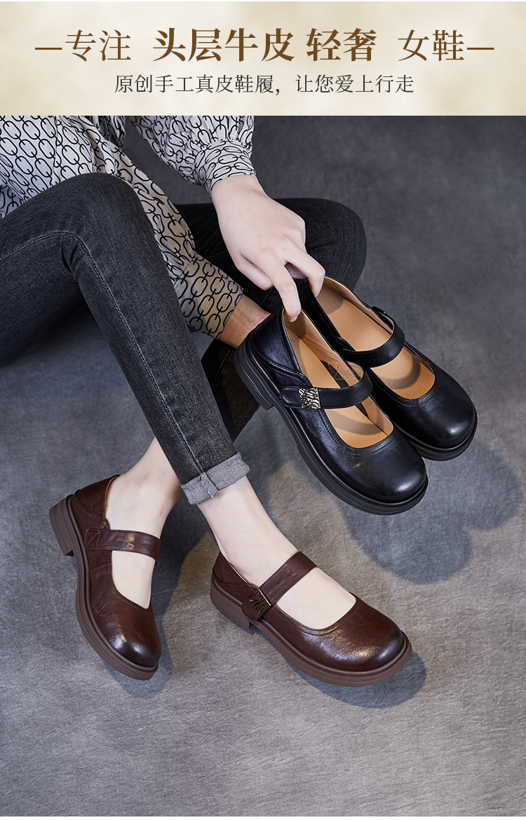 미국 천연 색상 Mary Jane 신발 2025 봄 새로운 올 매치 로우 입 플랫 가죽 여성 신발 두꺼운 힐 스트랩 신발스토어 가기