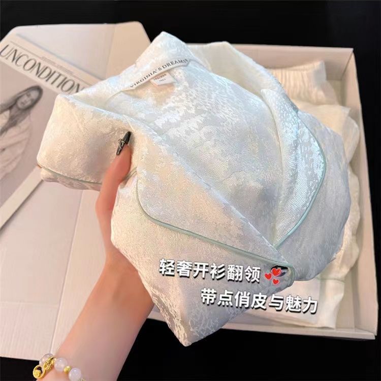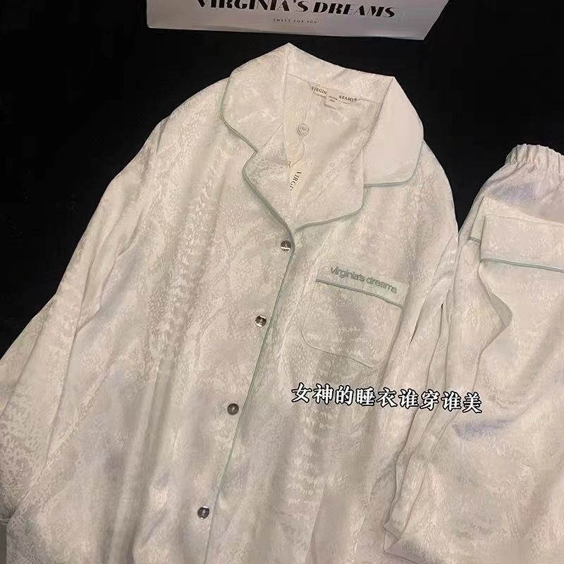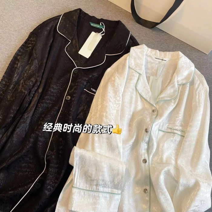 하이 엔드 커플 잠옷 여성의 봄과 가을 아이스 실크 긴팔 바지 하이 엔드 남성 인공 실크 홈 의류 여름스토어 가기