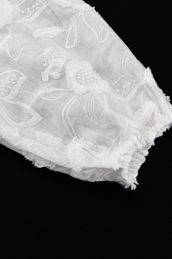 유럽과 미국의 국경 간 여성의 새로운 패션 섹시한 레이스 세트 수 놓은 관점 셔츠 높은 허리 반바지 화이트