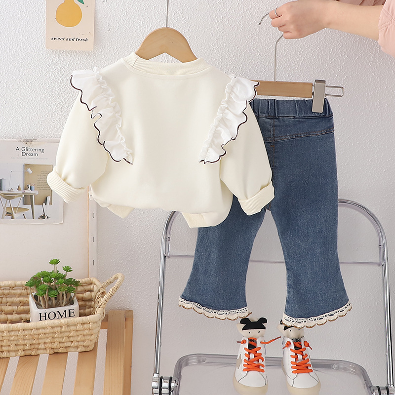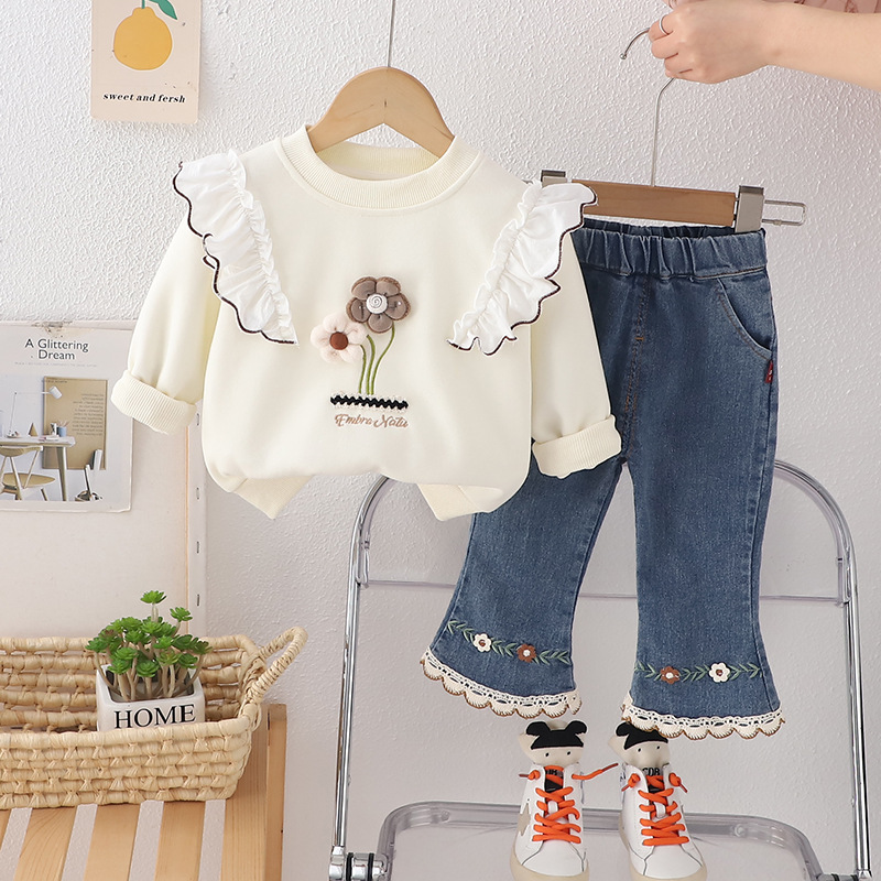 소녀 2025 새로운 봄 원피스 세트 유행 어린이 유행 아기 봄과 가을 입체 꽃 긴팔 두 조각 유행 세트