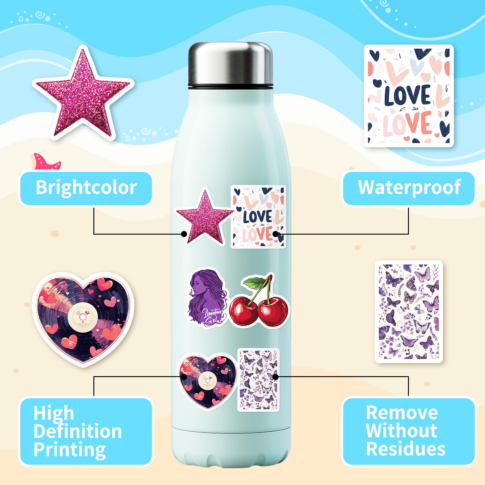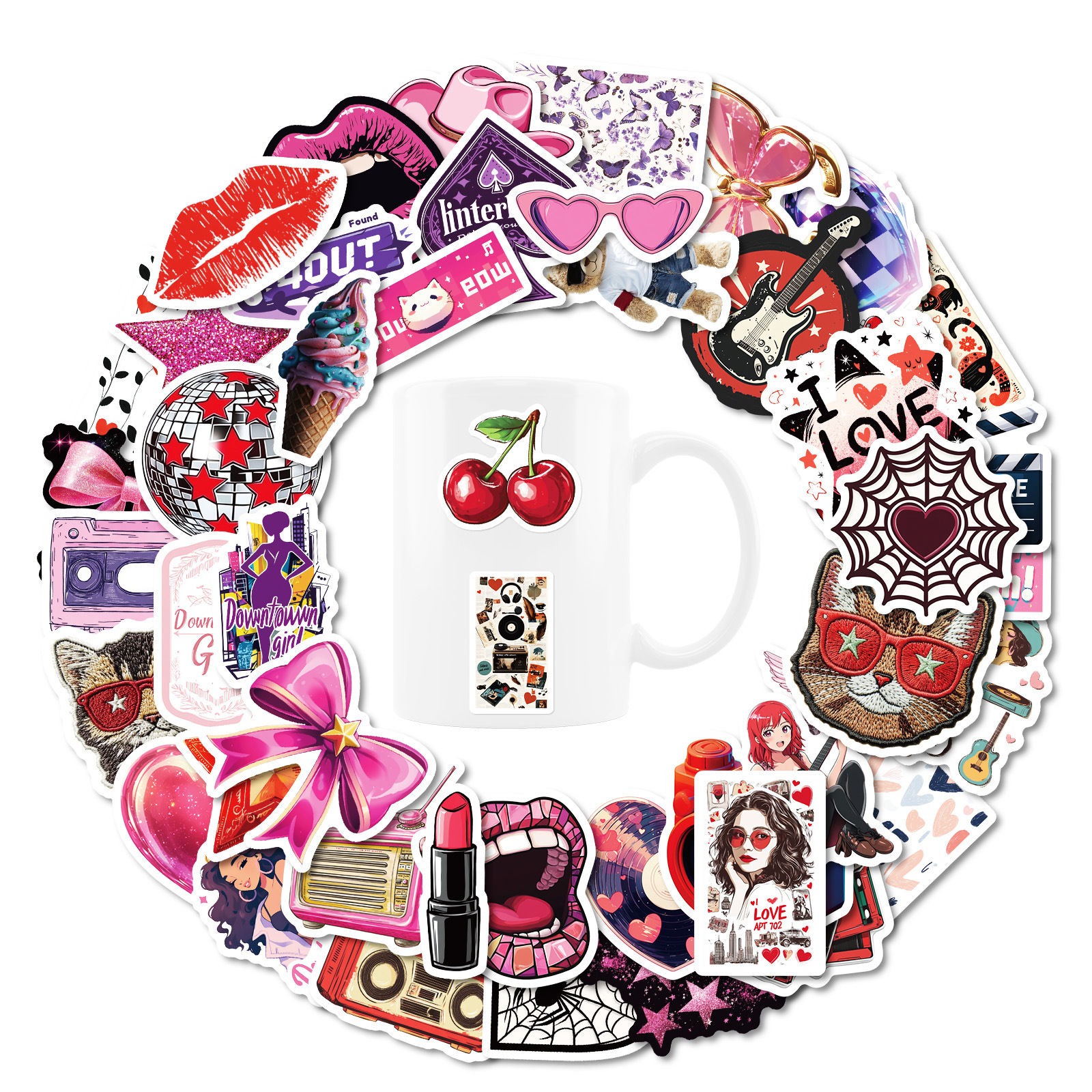 새로운 50 창조적 인 체리 고양이 입술은 스티커를 반복하지 않습니다 아마존 국경 베스트셀러 컴퓨터 손 계정 스티커스토어 가기