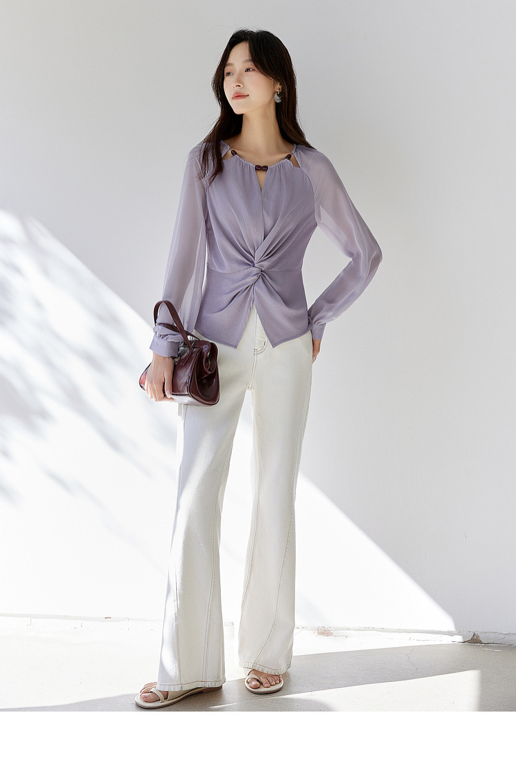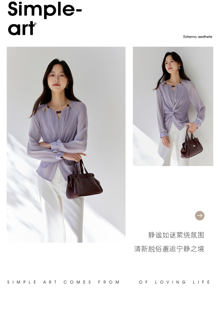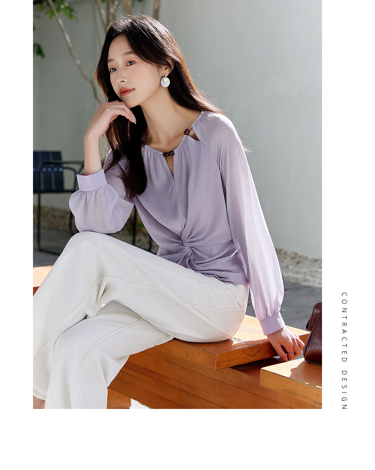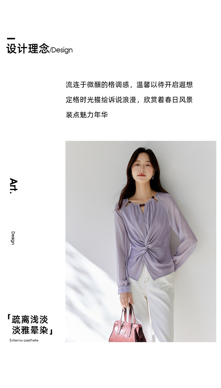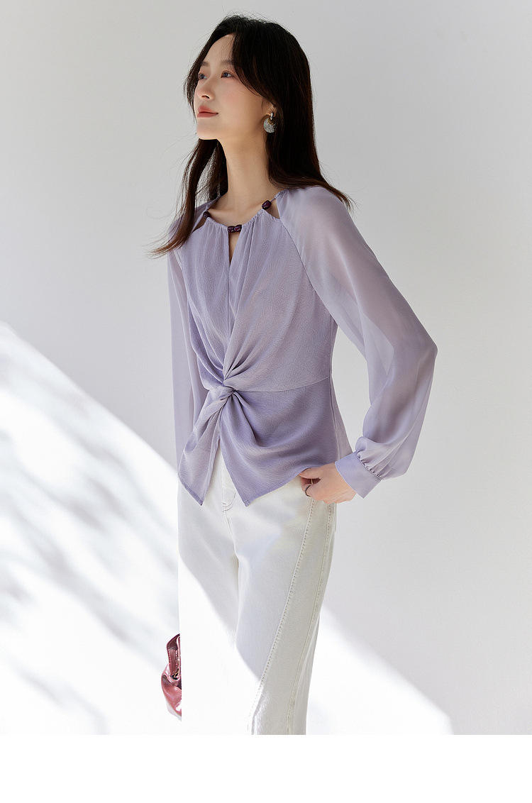 Zhen Xi 새로운 여성 라운드 넥 긴 소매 쉬폰 바느질 트위스트 최고 패션 캐주얼 셔츠 SQ589