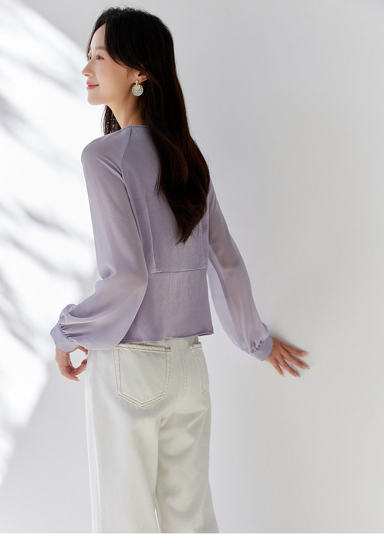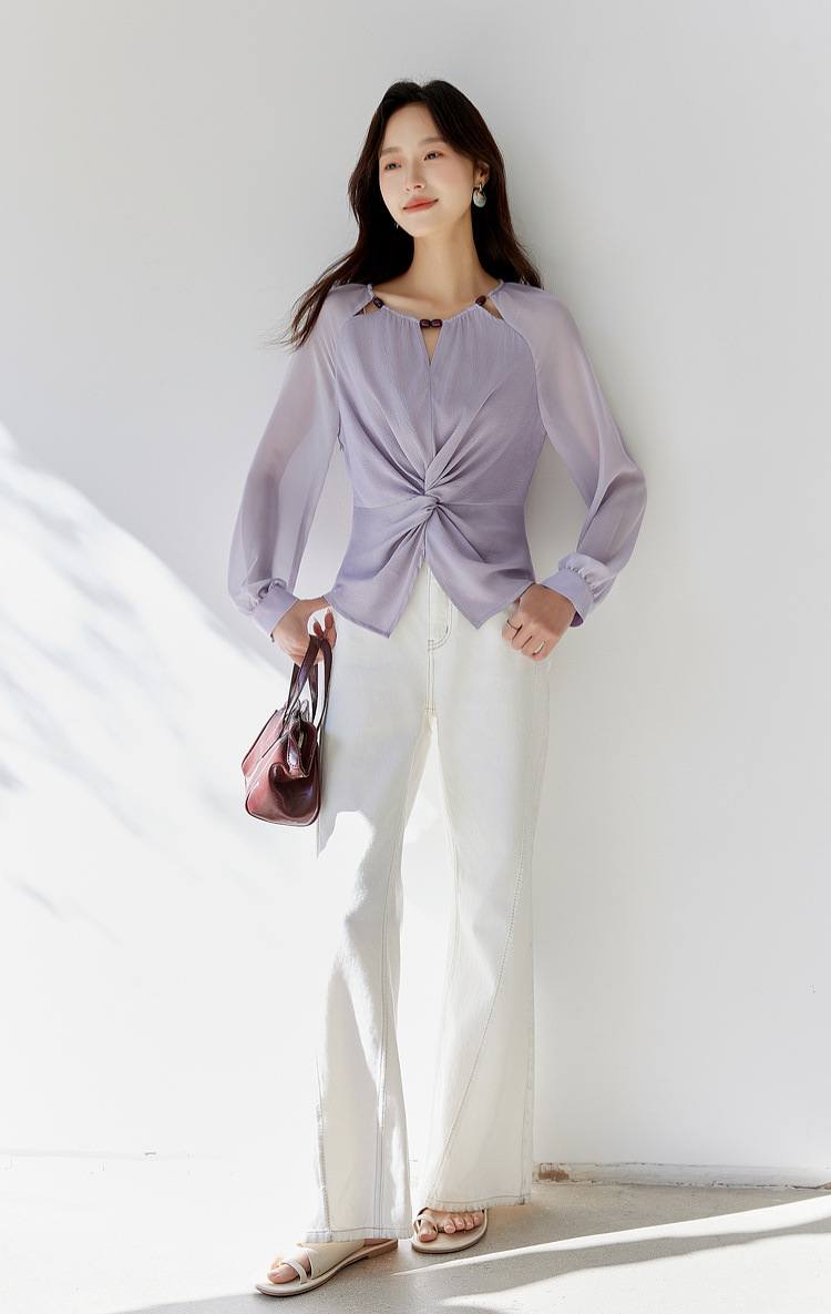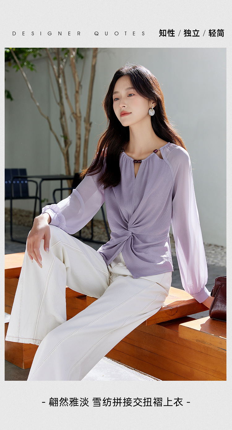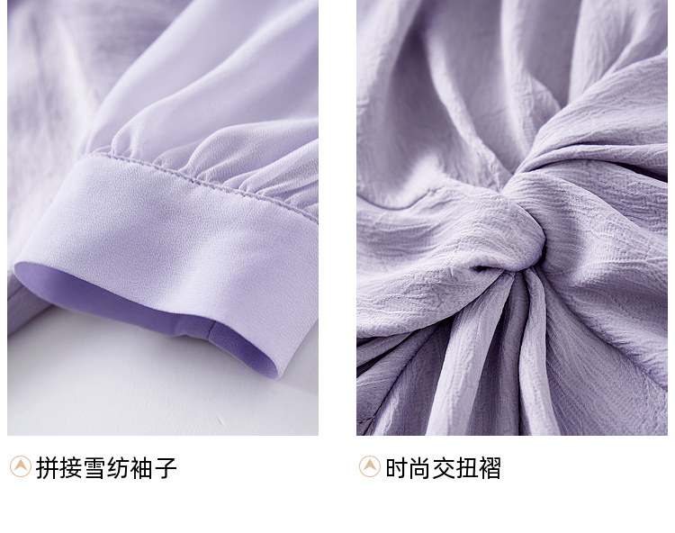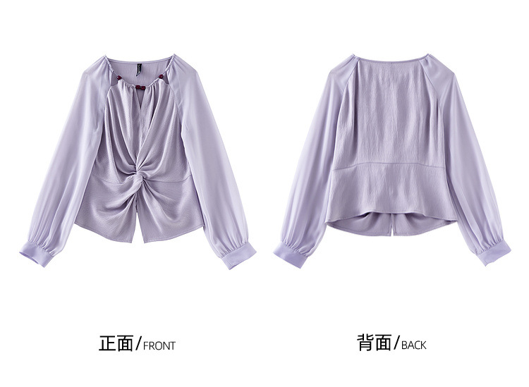 Zhen Xi 새로운 여성 라운드 넥 긴 소매 쉬폰 바느질 트위스트 최고 패션 캐주얼 셔츠 SQ589스토어 가기