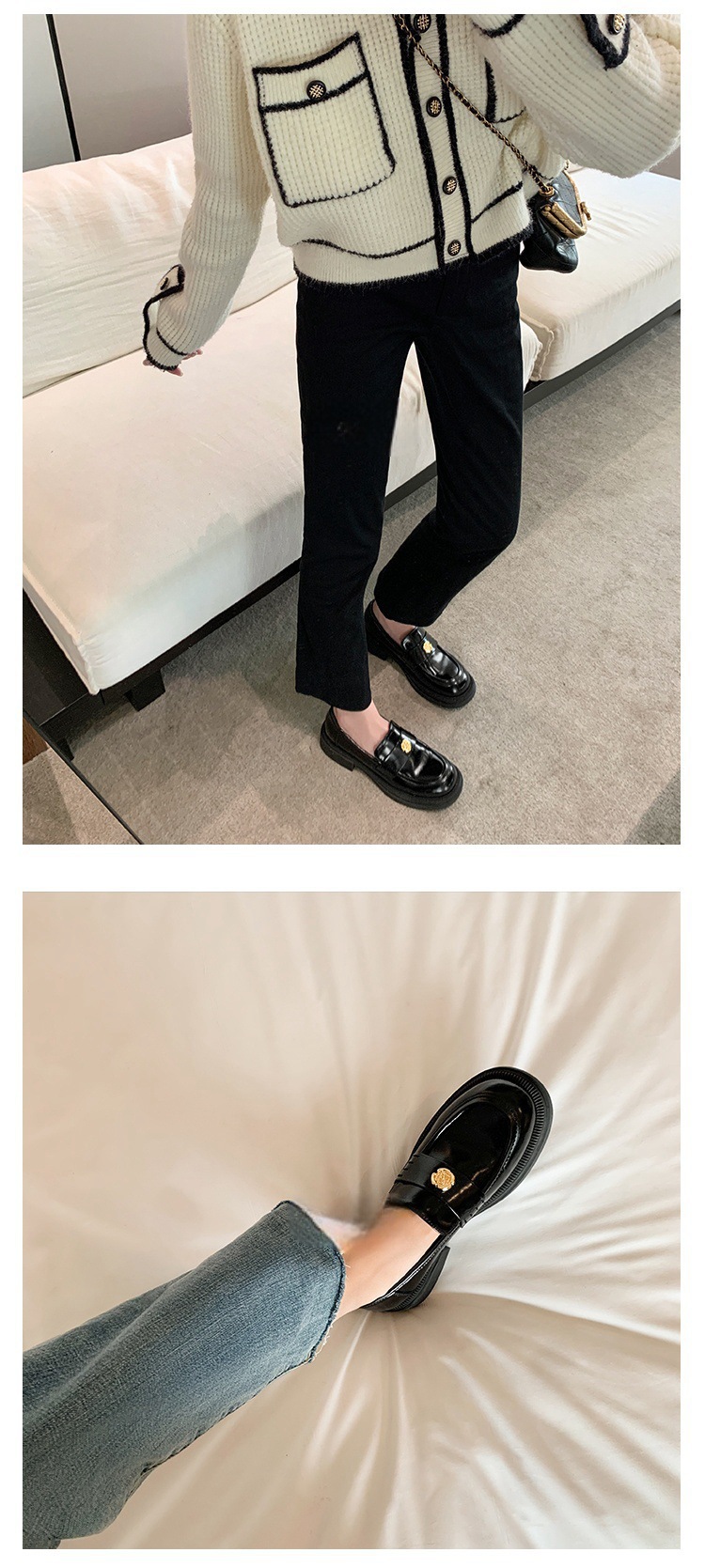 정품 가죽 동백 로퍼 여성 여름 2024 새로운 스타일 슬립 온 두꺼운 신발 영국 스타일 작은 가죽 신발스토어 가기