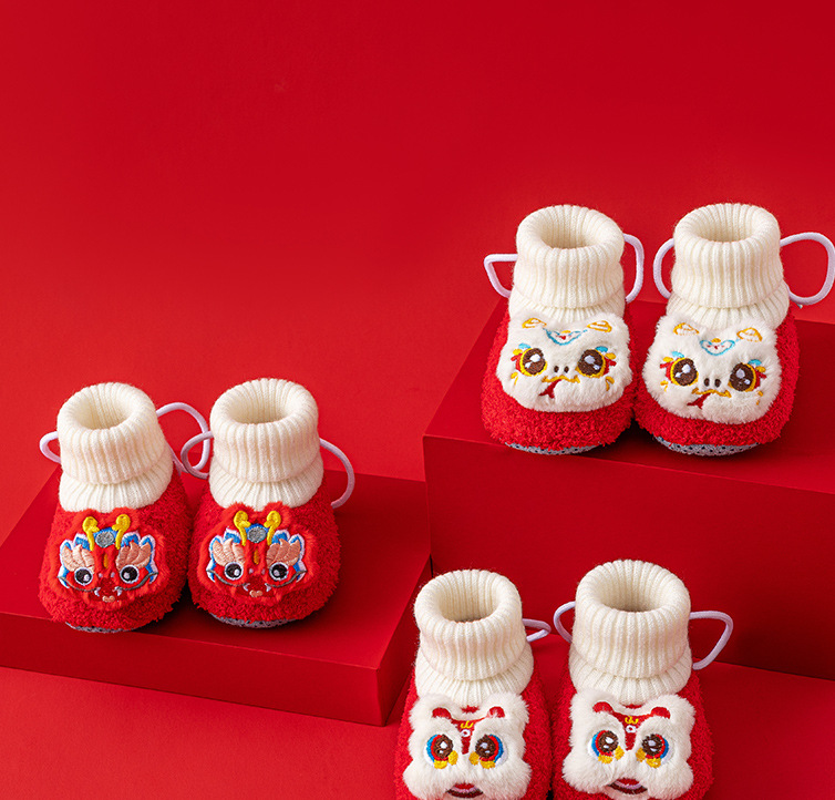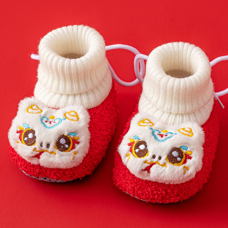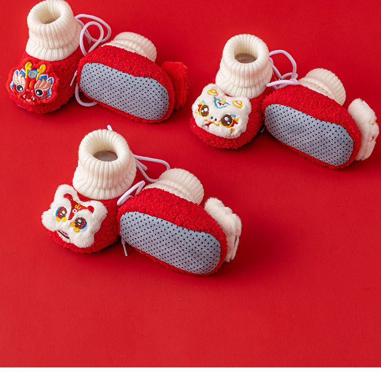 신생아 아기의 사전 단계 신발 가을과 겨울 양고기 벨벳 기모 두꺼운 따뜻한 미끄럼 방지 유아 바닥 신발