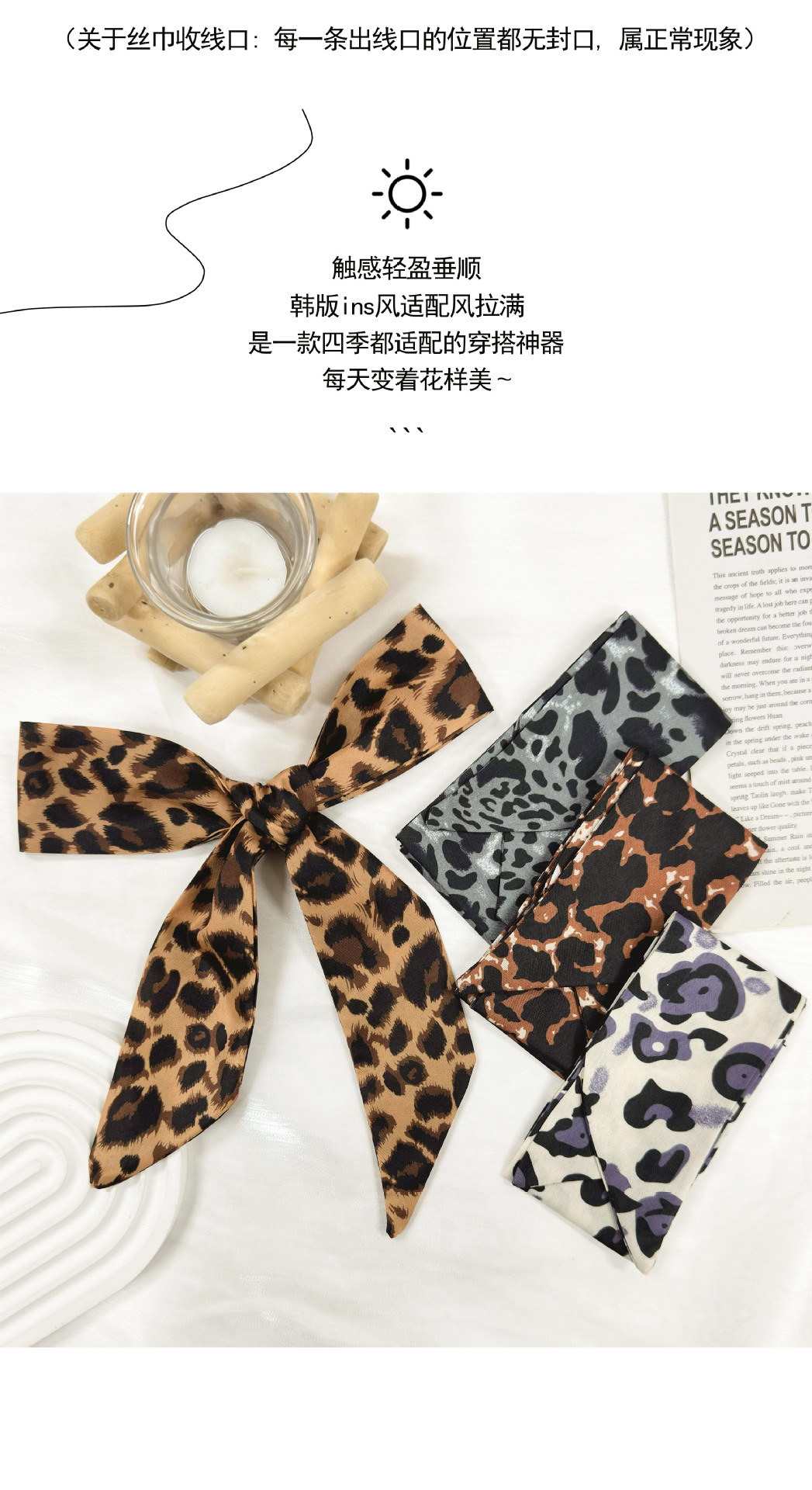 새로운 레오파드 무늬 작은 실크 스카프 한국 스타일 분위기 타이 헤어 포장 가방 장식 리본 올 매치 패션 손목 리본 액세서리