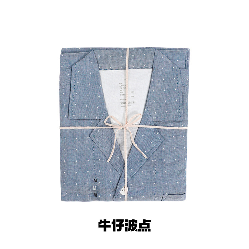 • 커플스타일 데님 도트무늬 남성용 더블 레이어 거즈 홈복
