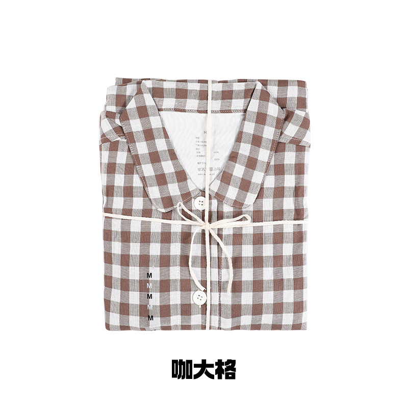 • 커플을 위한 더블 레이어 거즈 홈웨어, 여성용 커피 빅 그리드