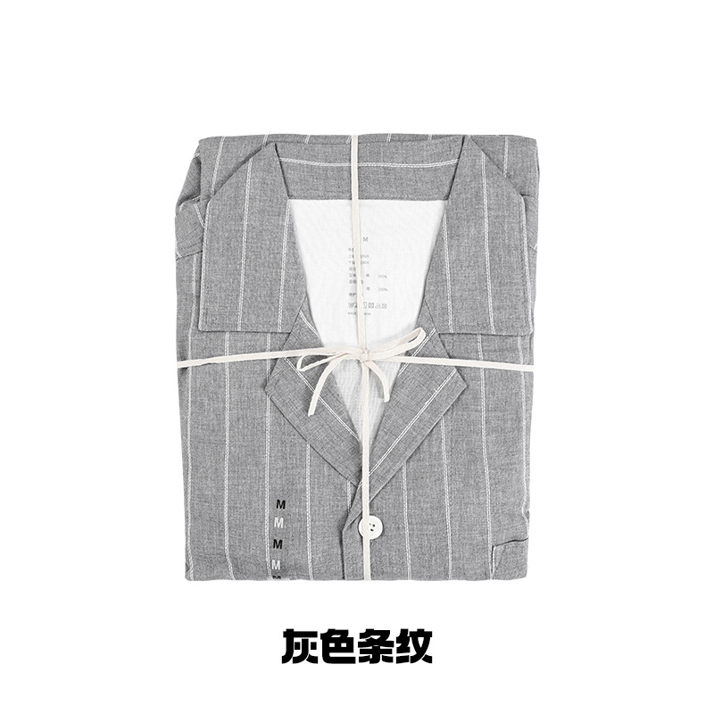 • 커플용 더블 레이어 거즈 홈웨어 그레이 스트라이프 남성용
