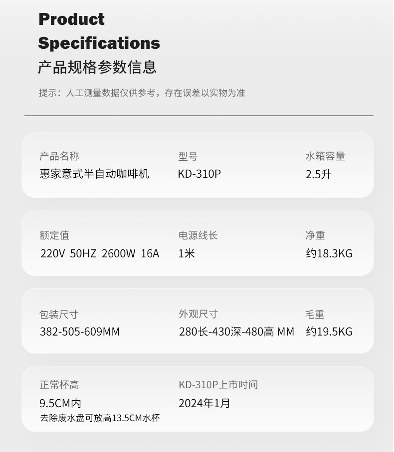WPM Huijia 커피 머신 KD310P 가변 압력 작은 이탈리아 미국 반자동 커피 연삭 캡슐 홈 상업스토어 가기