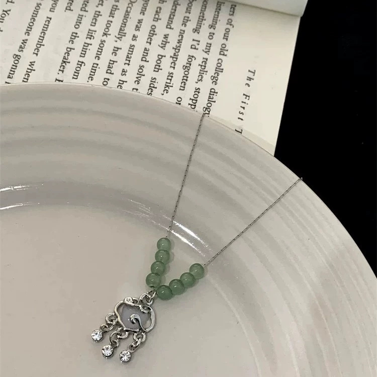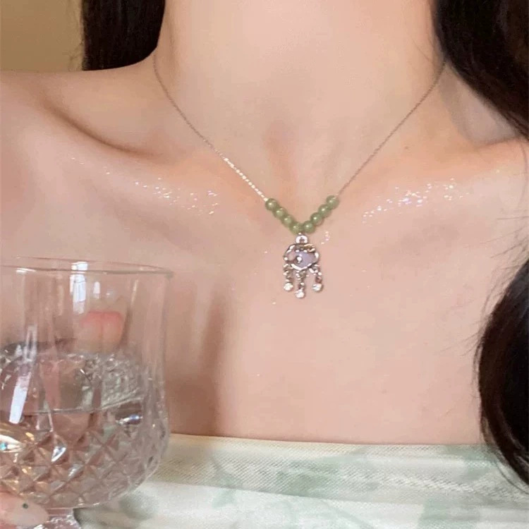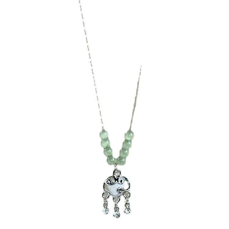 새로운 중국 스타일 국가 스타일 안전 잠금 술 목걸이 여성용 골동품 하이 엔드 구슬 모직 체인 민족 스타일 흰색 목걸이스토어 가기