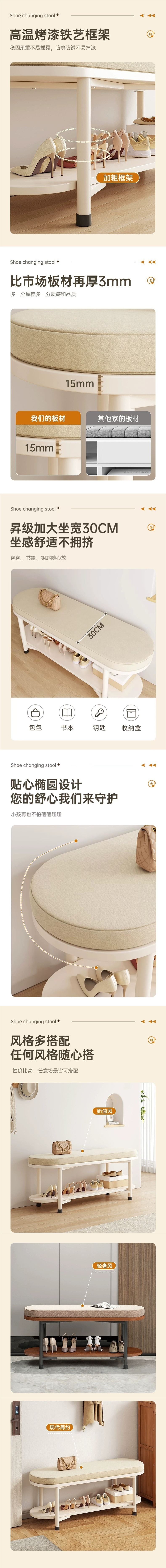 장식 장식 된 신발 캐비닛 앉아 의자 통합 가구 긴 의자 부드러운 가방 도어 착용 크림 스타일 신발 신발 변경스토어 가기