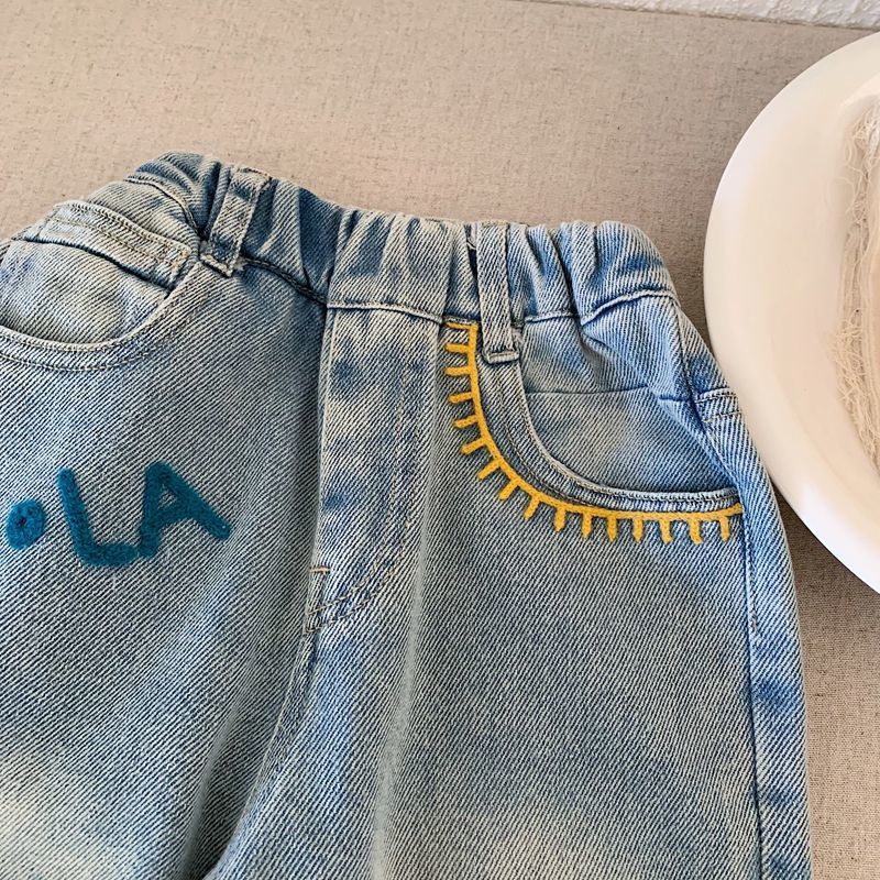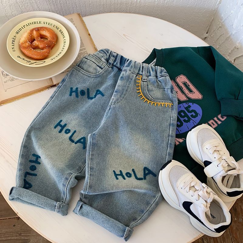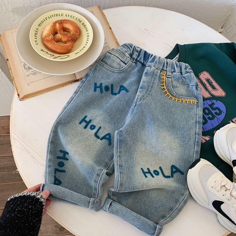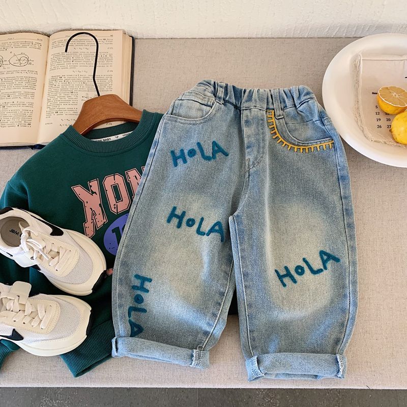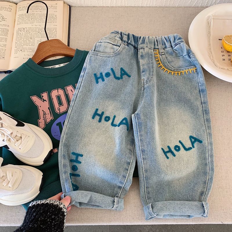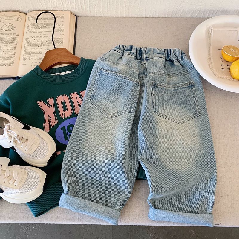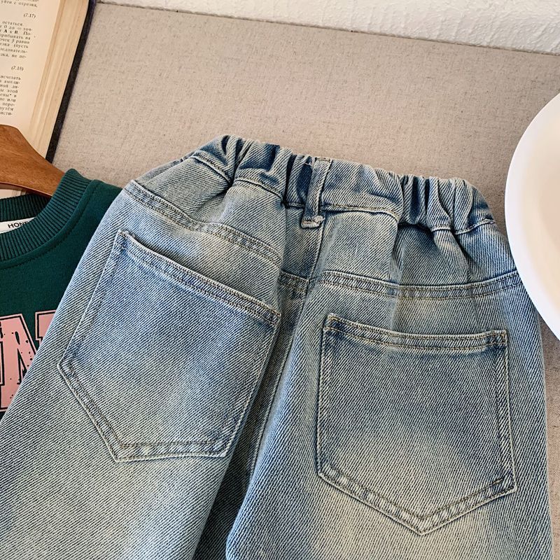 소년 청바지 2025 가을 새로운 어린이 탄성 부드러운 라이트 블루 당근 바지 캐주얼 멋진 잘 생긴 바지 유행스토어 가기