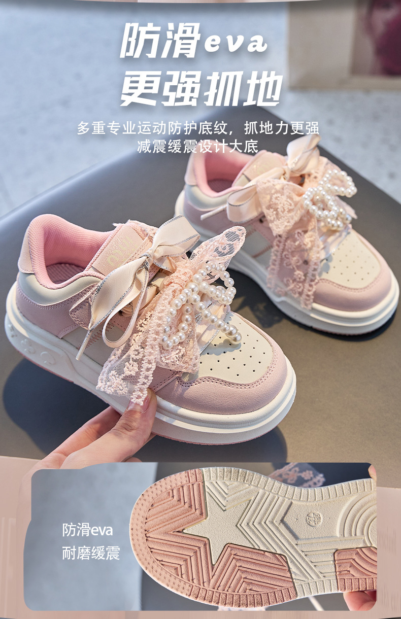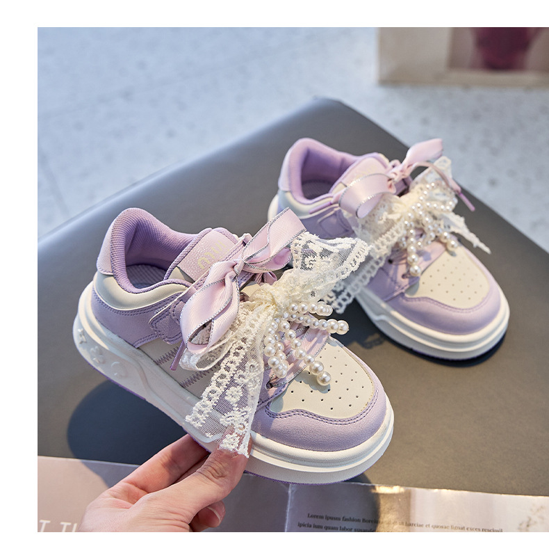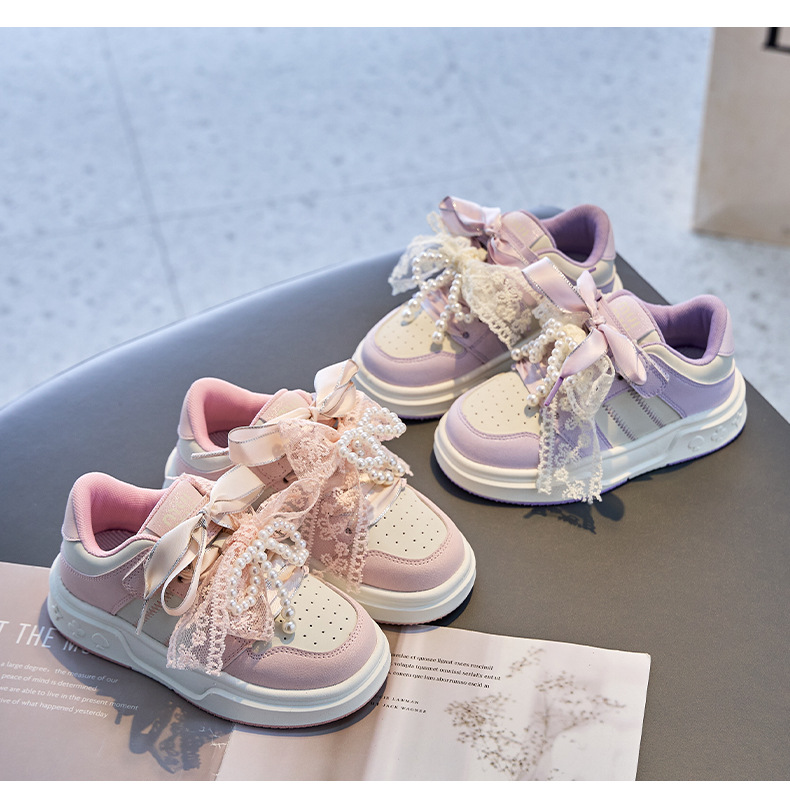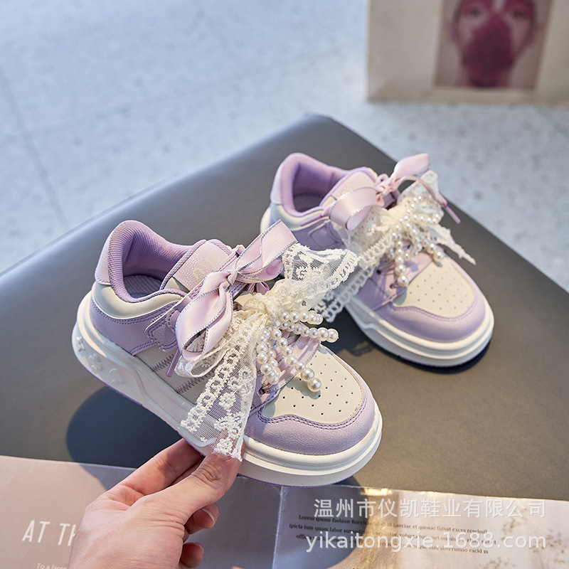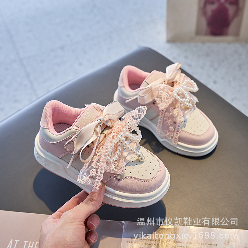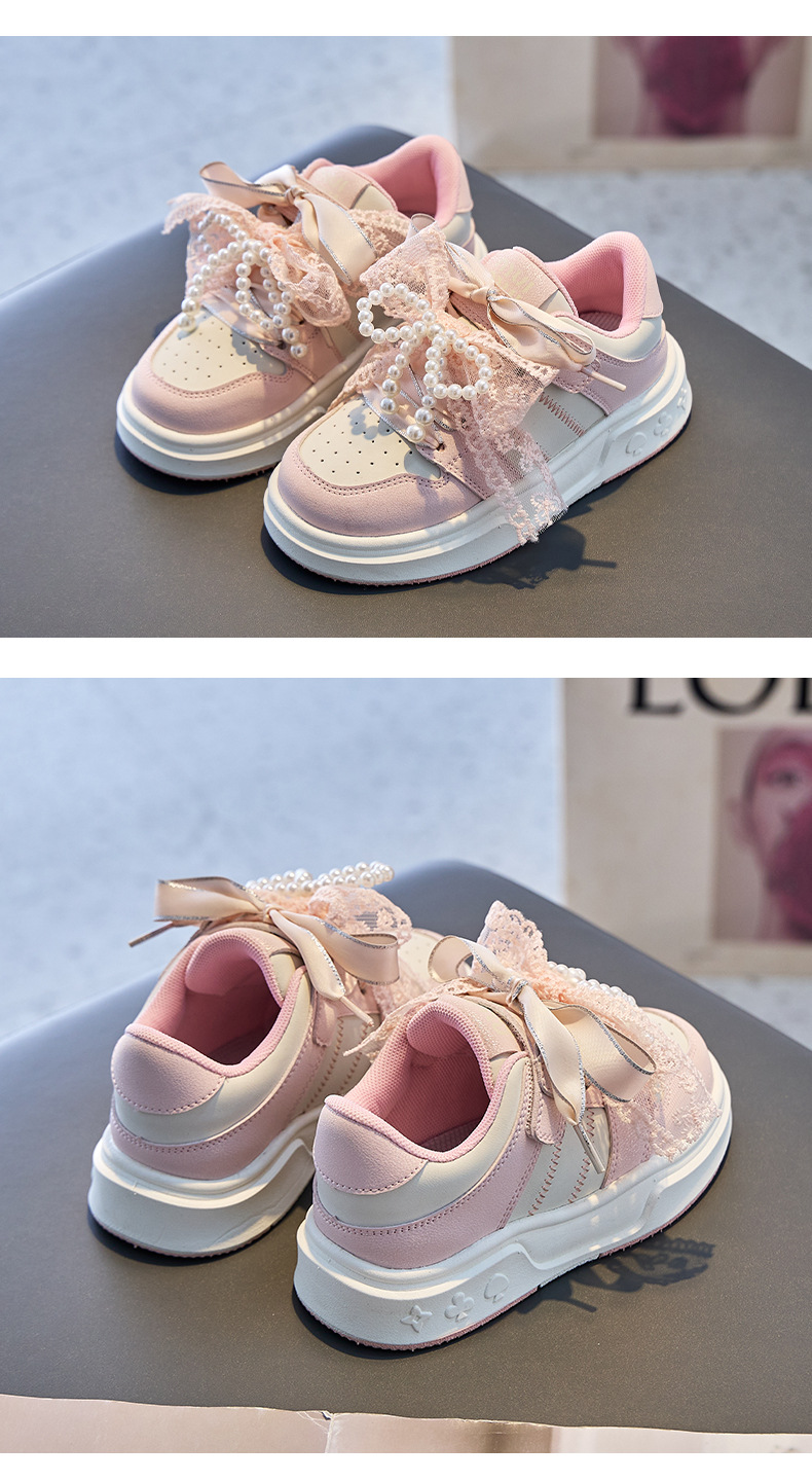 여자 진주 패션 활 공주 신발 2022 봄과 가을 어린이 스포츠 보드 신발 여자 로우 탑 통기성스토어 가기