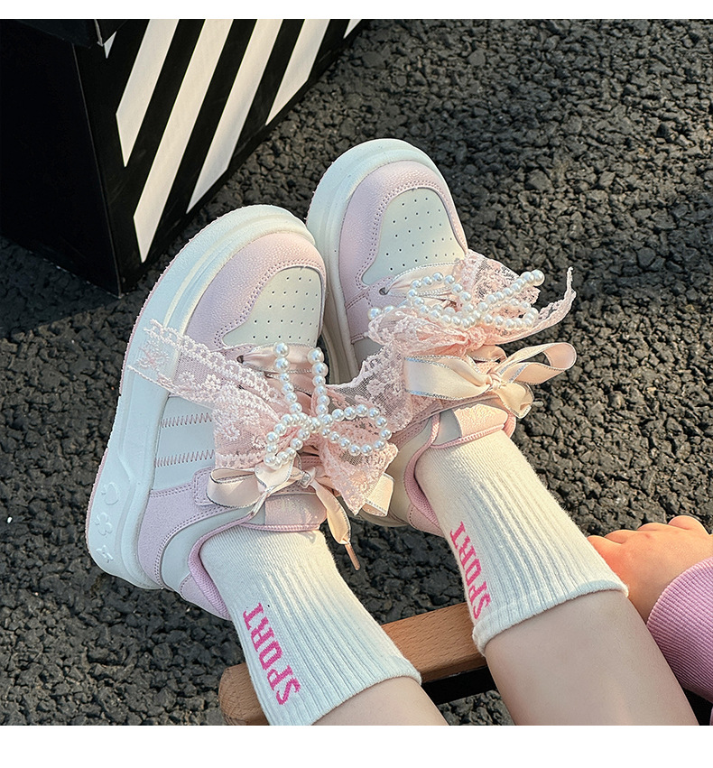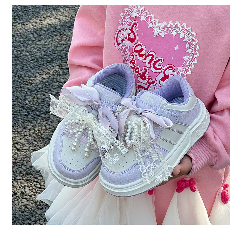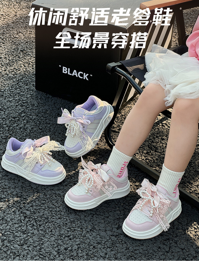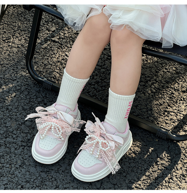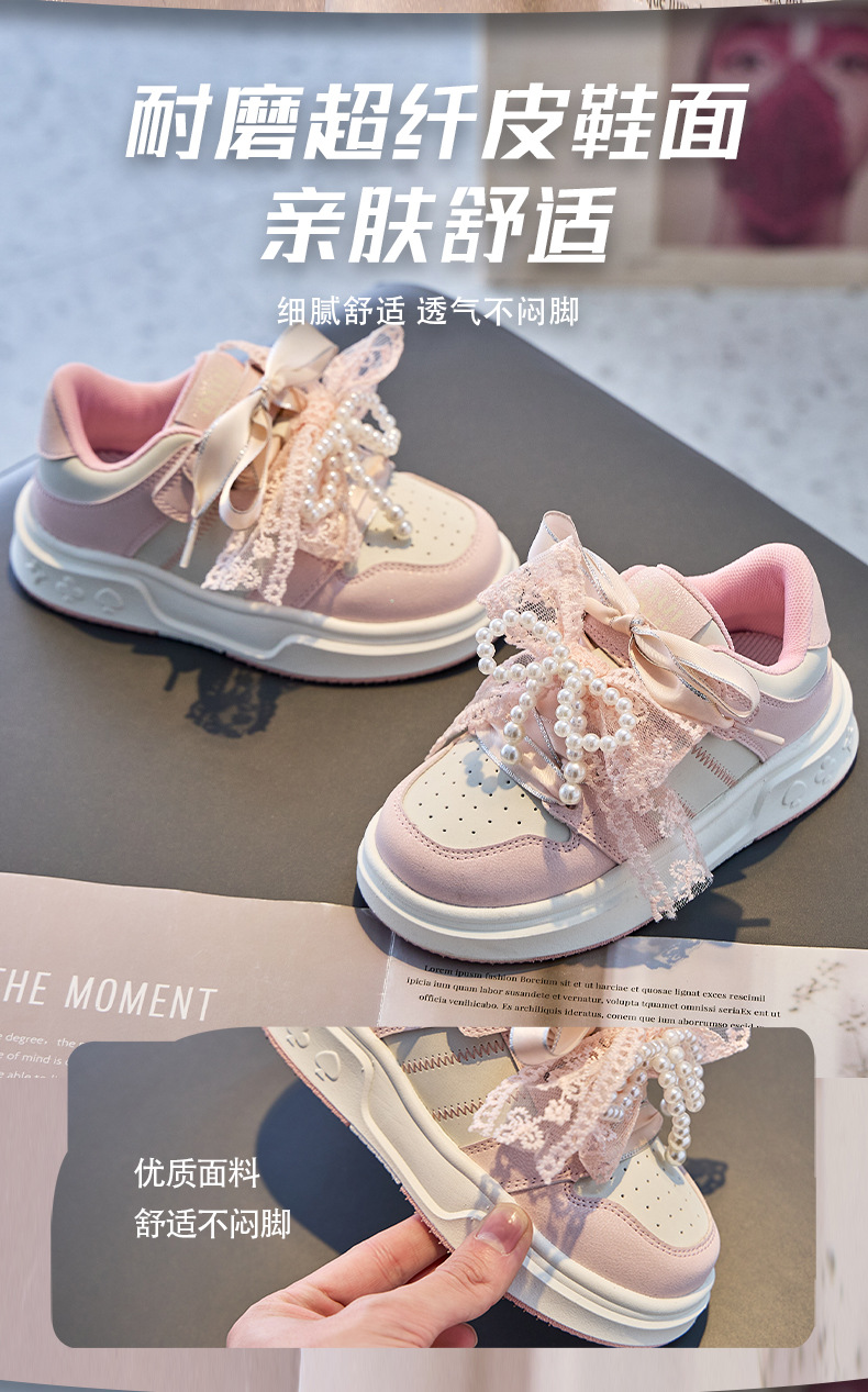 여자 진주 패션 활 공주 신발 2022 봄과 가을 어린이 스포츠 보드 신발 여자 로우 탑 통기성스토어 가기