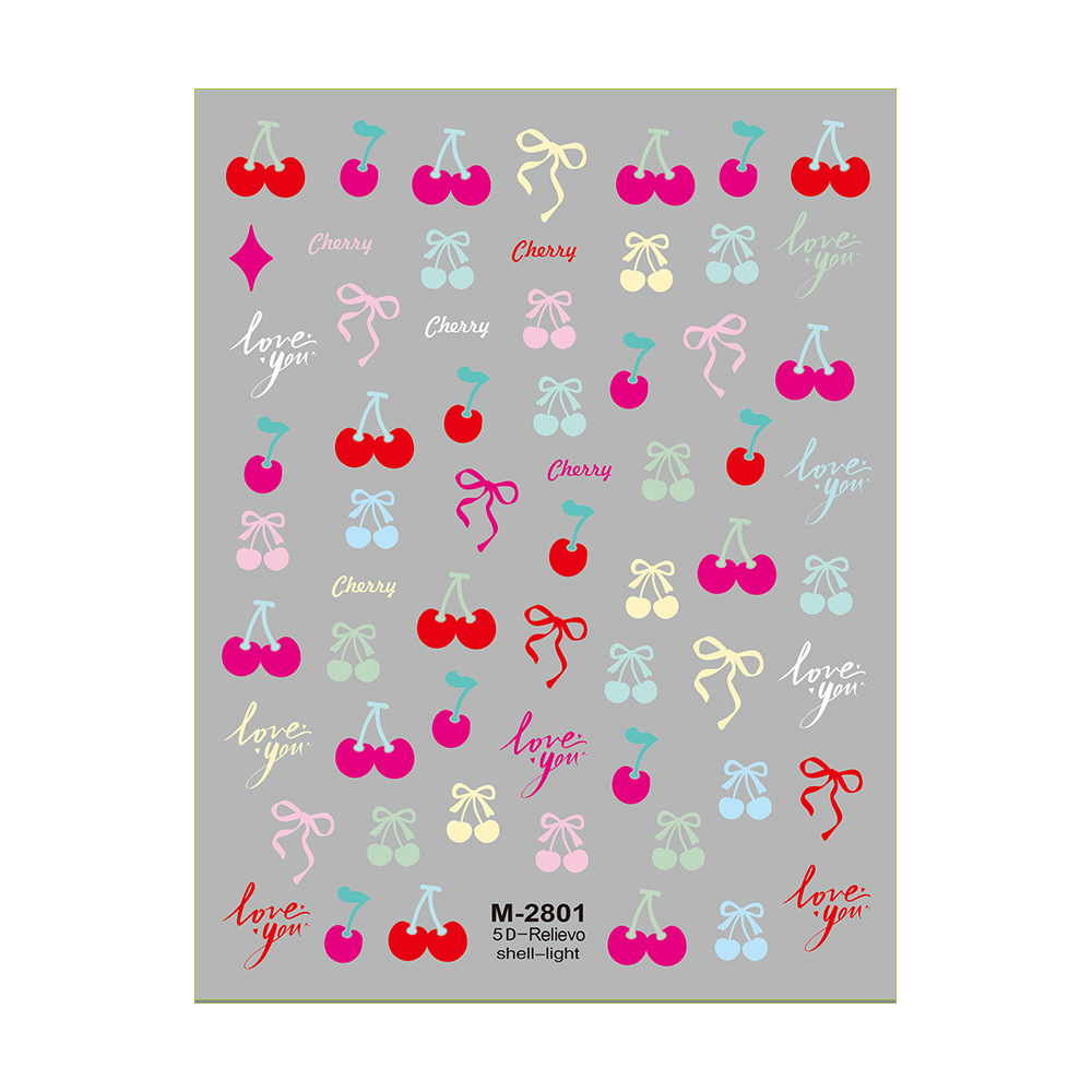 Redanco 새로운 5D 양각 쉘 라이트 체리 활 네일 스티커 스테레오 네일 스티커 M-2803