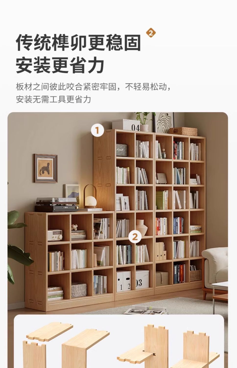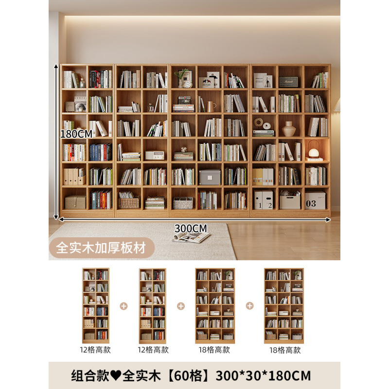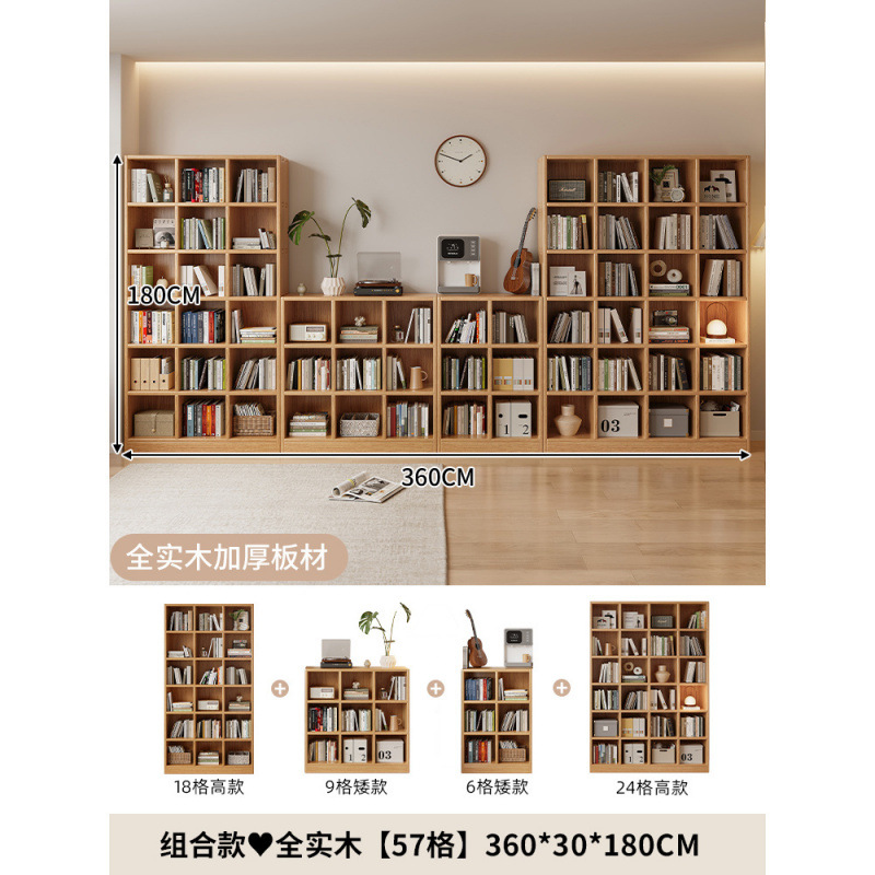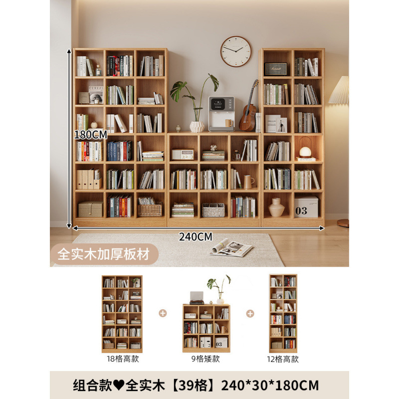 단단한 나무 책장 보관 선반 바닥 서 통합 된 전체 벽 거실 무료 조합 펜 벽 기울기 가정용 다층 책장스토어 가기
