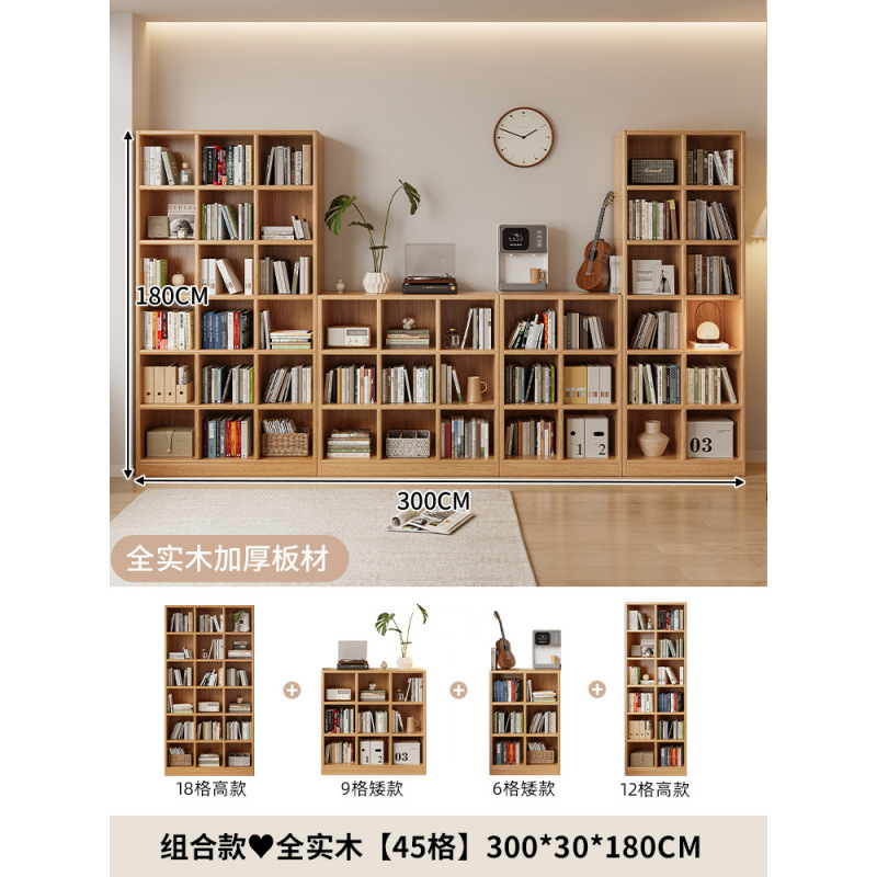 단단한 나무 책장 보관 선반 바닥 서 통합 된 전체 벽 거실 무료 조합 펜 벽 기울기 가정용 다층 책장