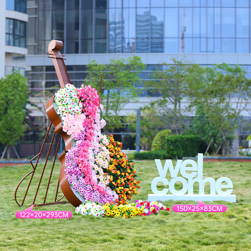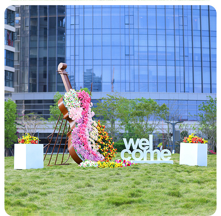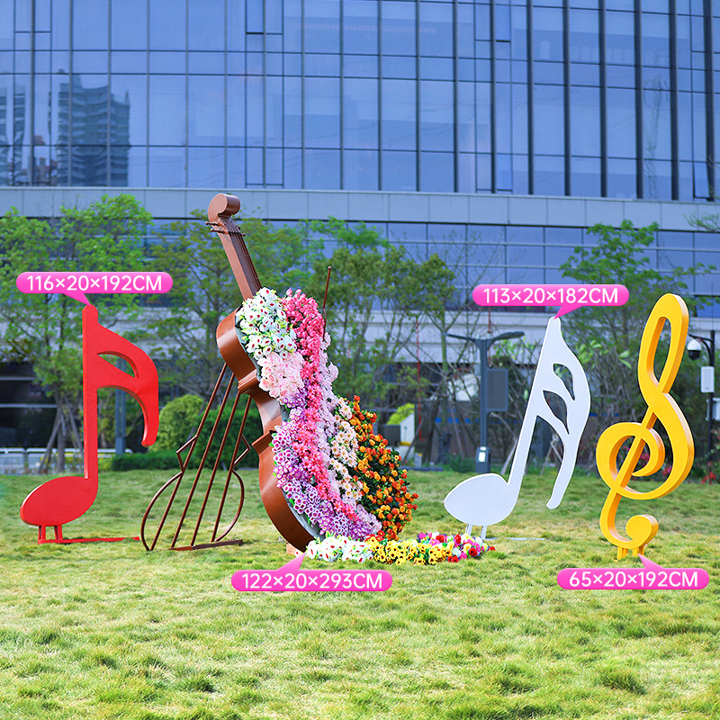 철 첼로 조각 금속 노트 헤드셋 피아노 꽃 상자 장식 판매 부서 잔디 환영 홈 장식품