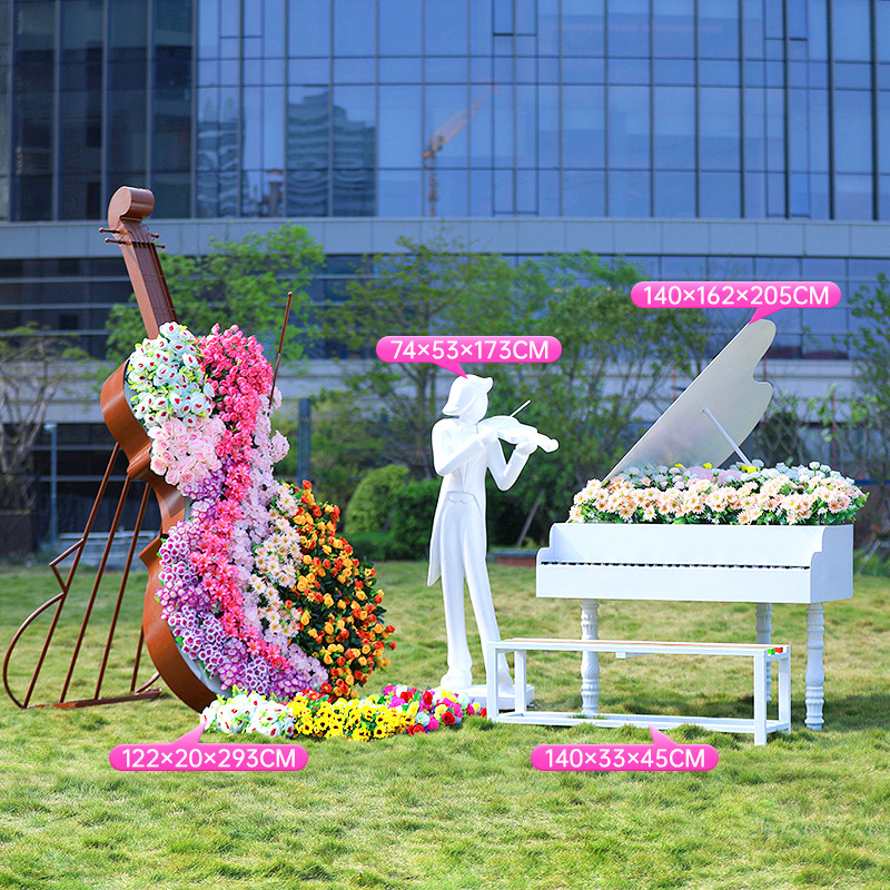 철 첼로 조각 금속 노트 헤드셋 피아노 꽃 상자 장식 판매 부서 잔디 환영 홈 장식품스토어 가기