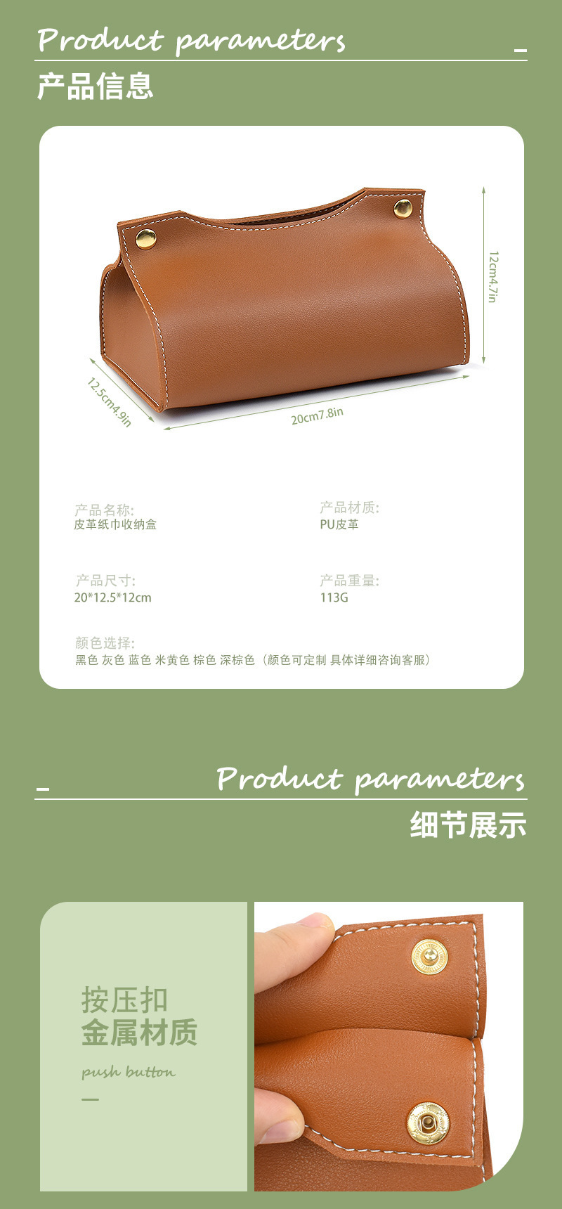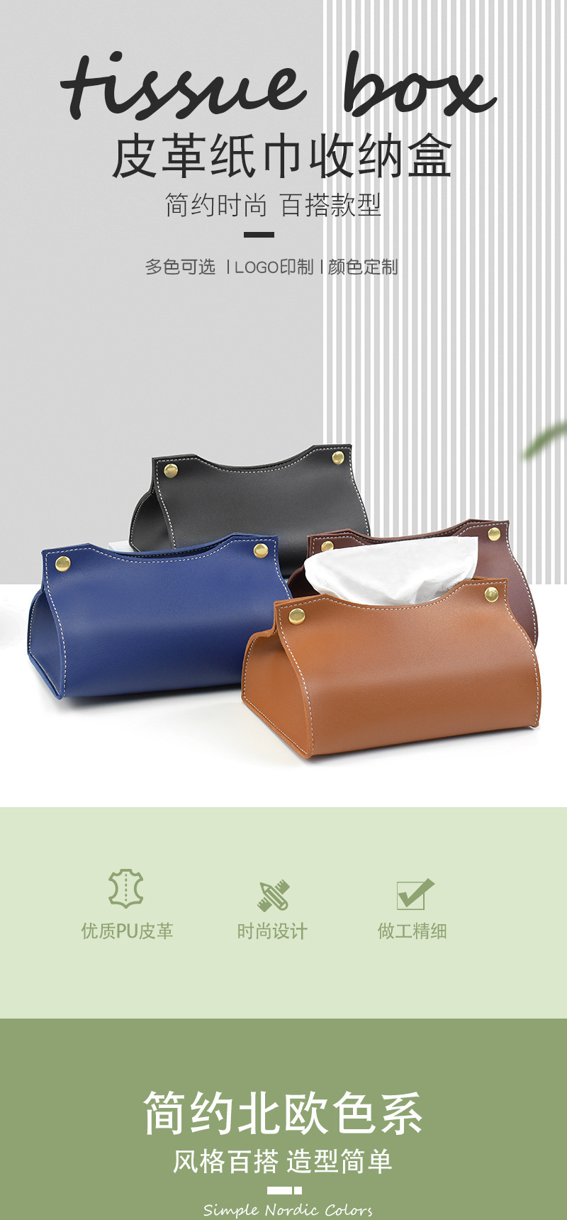북유럽 스타일 조직 상자 홈 거실 커피 테이블 데스크탑 방진 종이 상자 가죽 자동차 조직 보관 상자 도매