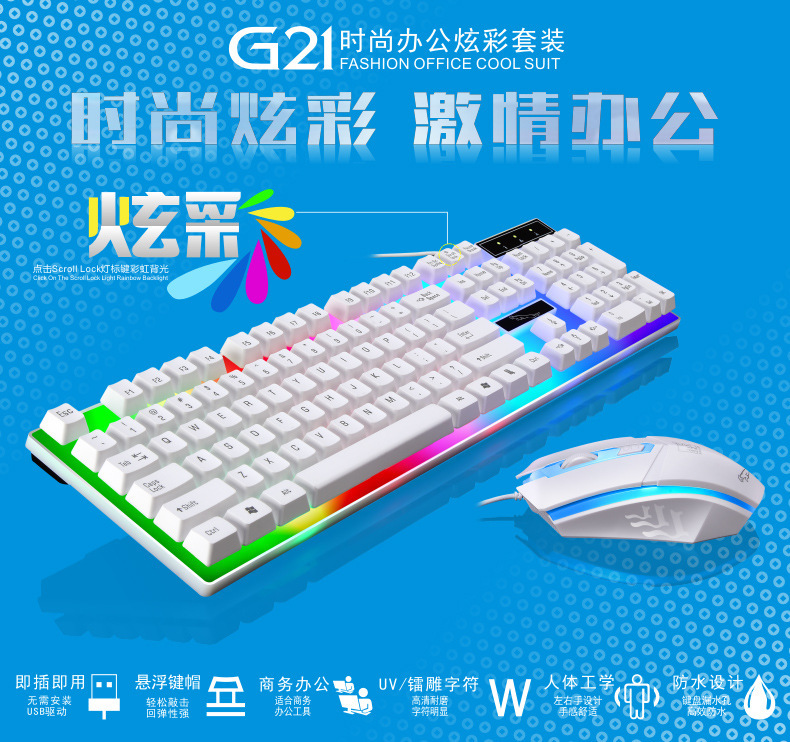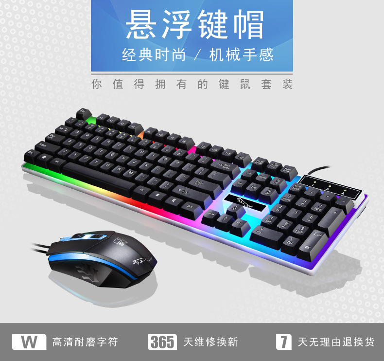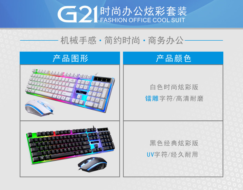 가벼운 표범 G21 유선 USB 발광 키보드 마우스 세트 컴퓨터 기계 느낌 키보드 마우스 세트 액세서리 도매스토어 가기