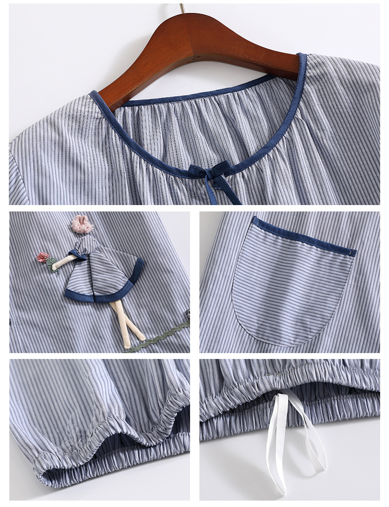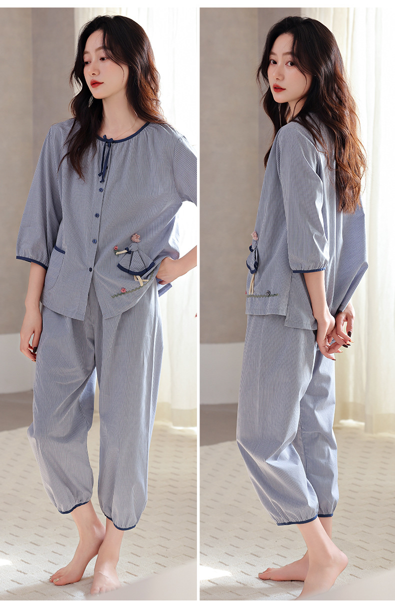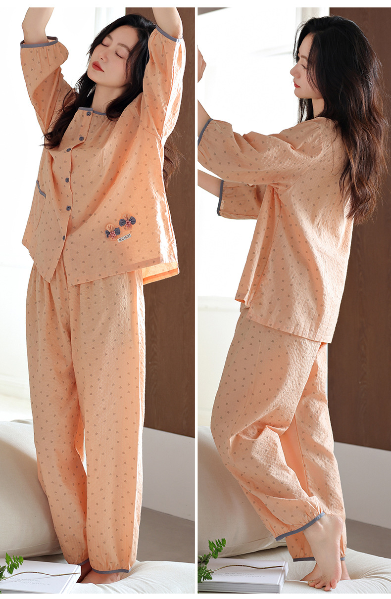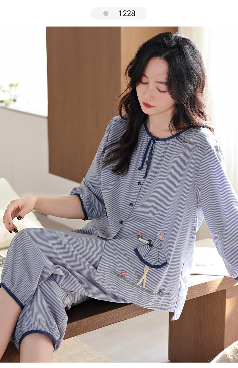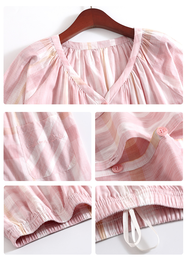 짠 면 거즈 잠옷 여성의 봄과 여름 얇은 순면 홈 옷 중년 어머니 플러스 사이즈 소매 세트스토어 가기