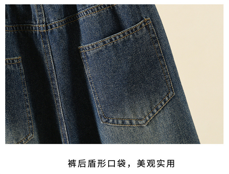 국경을 넘나 드는 소녀의 봄과 가을 청바지 2025 새로운 한국식 중 · 빅 키즈 패션 스트레이트 세련 된 사랑 자수 바지