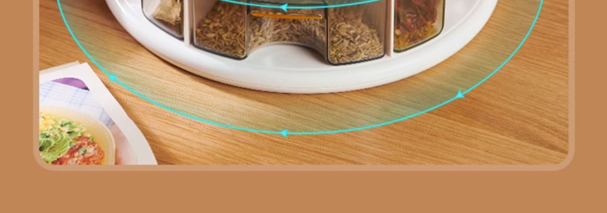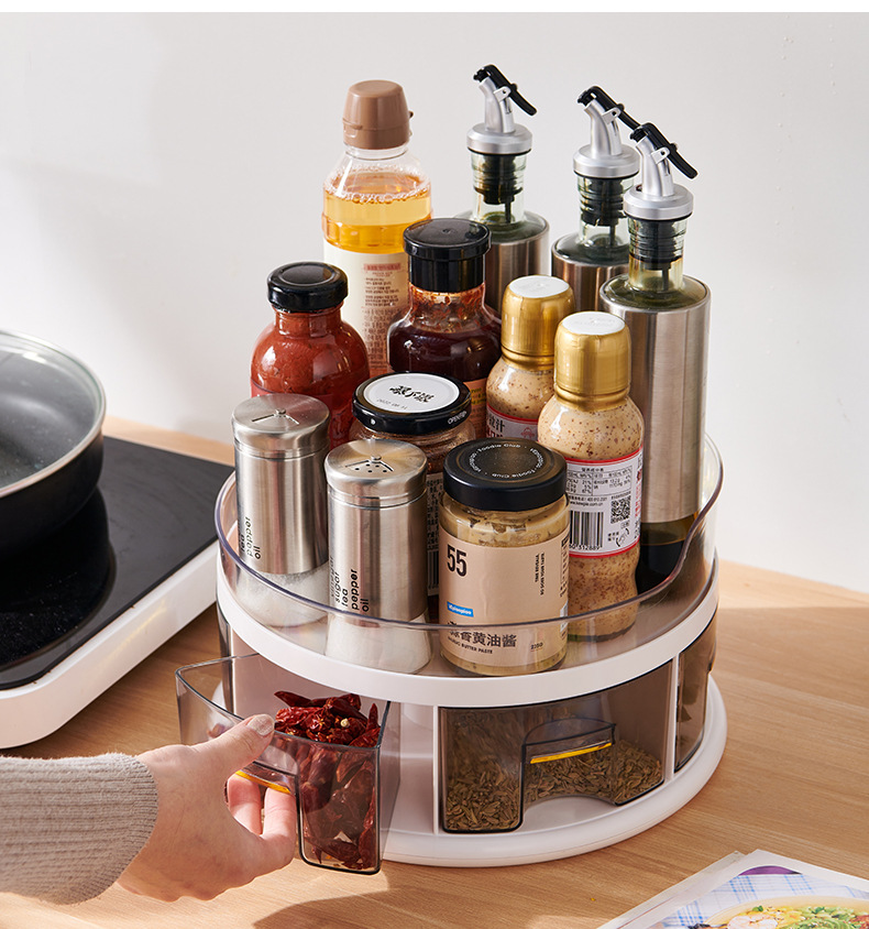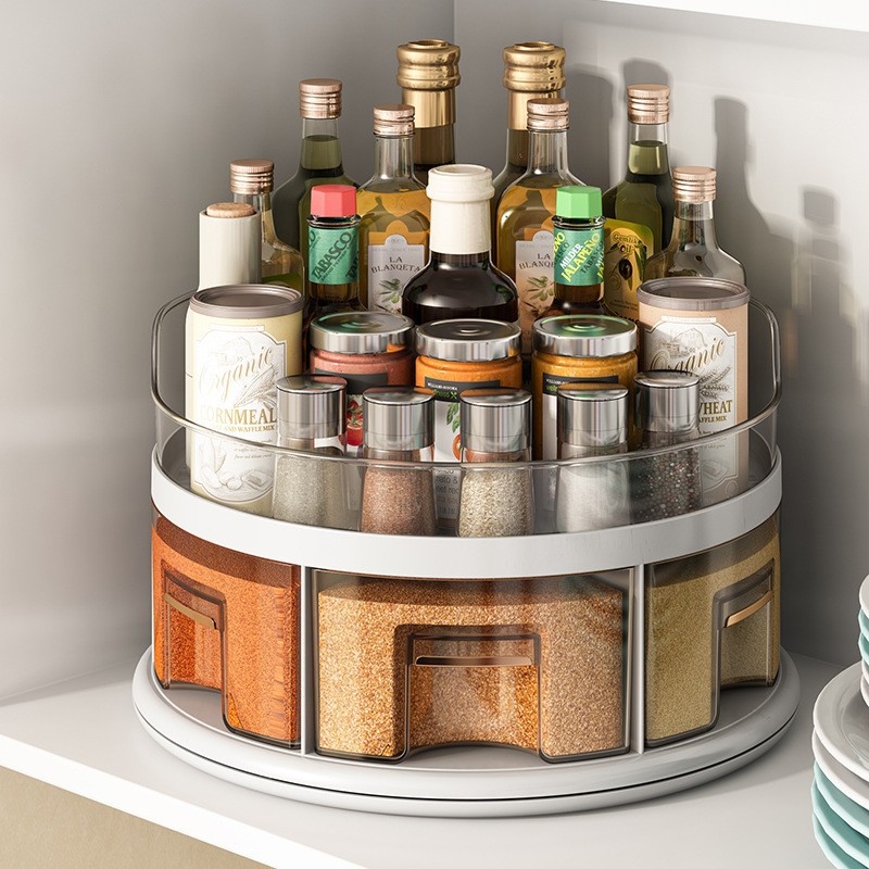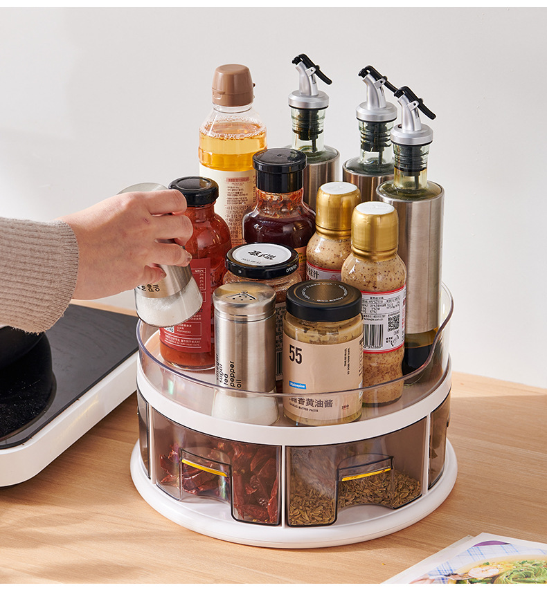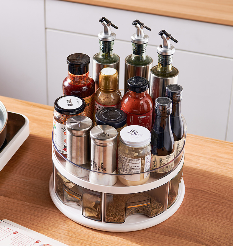 주방 회전식 양념통 정리대, 조리대 일체형 다중 칸 양념통, 다기능 기름, 소금, 소스, 식초병 보관함