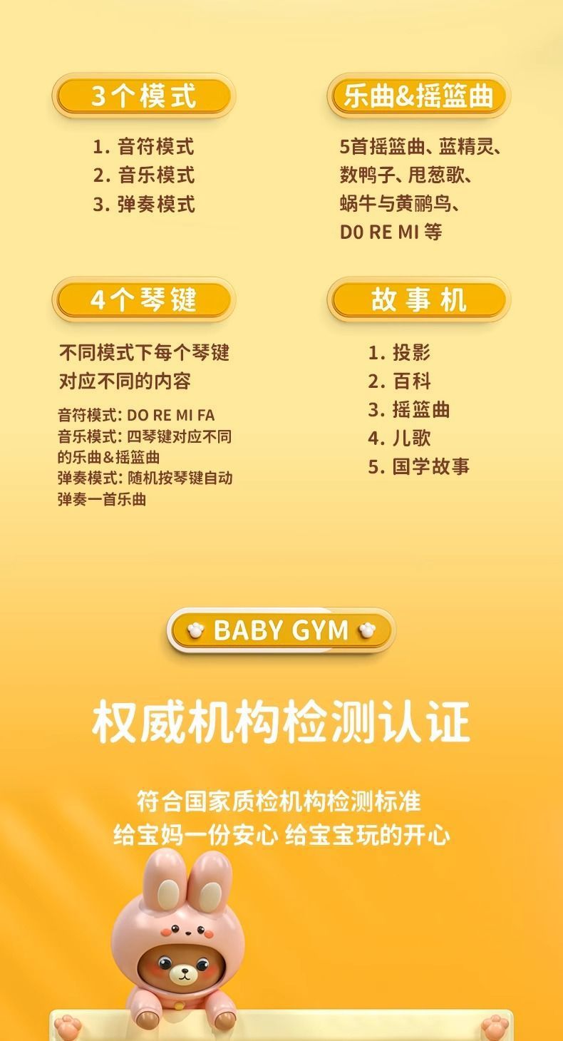 • 토끼 [블루투스 충전 버전] 머리받침대 + 가드레일 + 공 + 벨 + 조기교육기